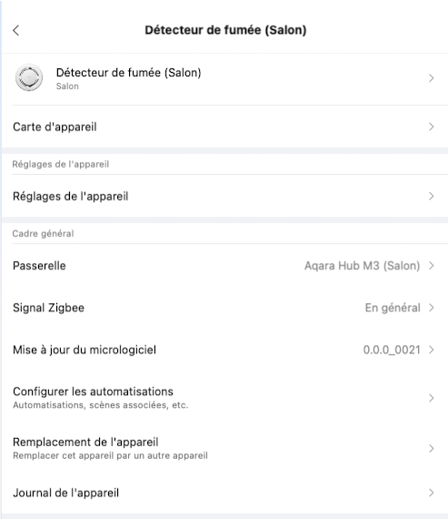 On this type of device, the available options are deliberately limited. However, the Aqara Home application includes a particularly useful feature: alarm grouping. The concept is simple and very effective. As soon as one alarm detects smoke, it immediately notifies the other alarms in the group, which then trigger as well. The alert becomes impossible to miss, even in a large home. When properly distributed across rooms, these alarms fully serve their purpose.