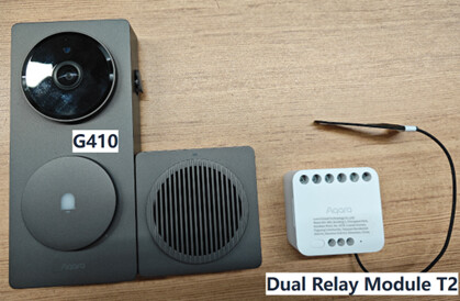 Step 1: Device Preparation. After purchasing the G4 or G410 doorbell, you need to purchase an additional Aqara Single Switch Module T1 (With Neutral) or Dual Relay Module T2. I have shown the devices that need to be prepared for G410 and G4 respectively in the following figure. As the G4 doorbell does not have Hub function, it requires an additional Aqara hub (recommended here are Hub E1 or Hub M100). If you have other Aqara hubs at home, you can also use them without additional purchase. The following content is based on the combination of G410 and Dual Relay Module T2 as an example.