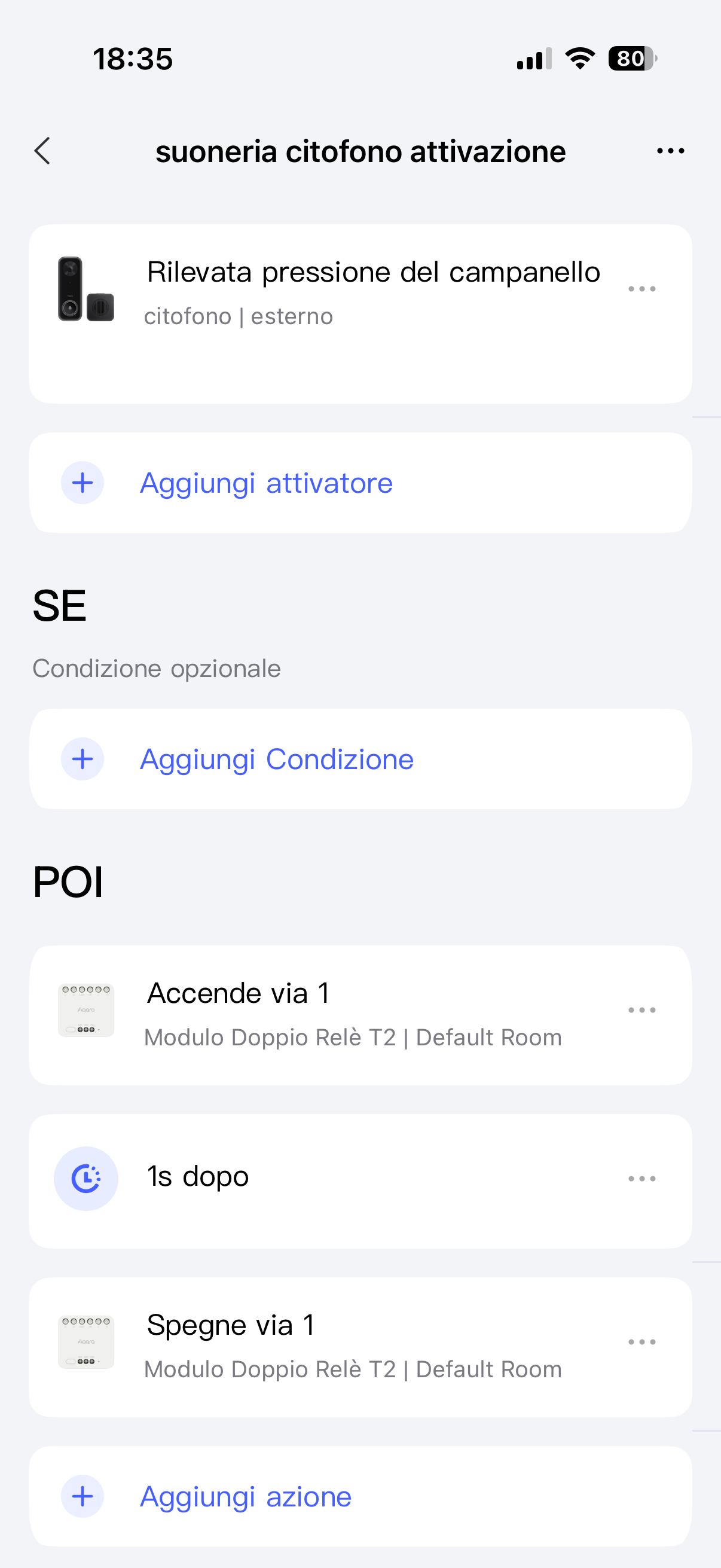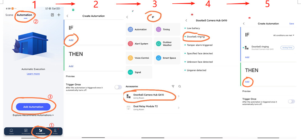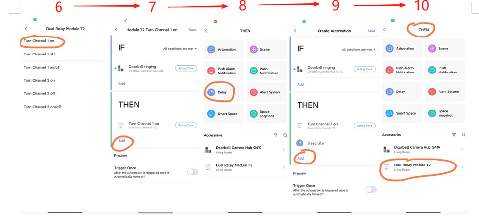 Step 3: Configure Automation: Complete the automation configuration as shown in the diagram below. Considering that most of users have never used Aqara’s automation configuration feature, I have taken detailed screenshots of the APP operation steps. In step 8, you can freely configure the duration of each continuous ringing of the original bell by setting different seconds.