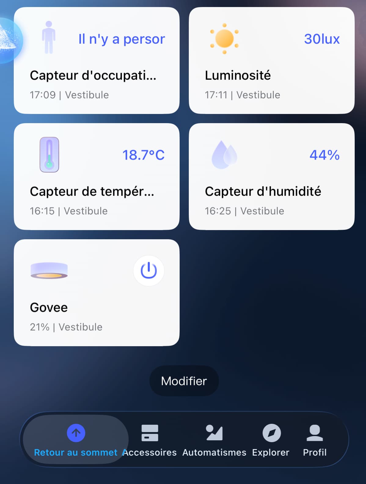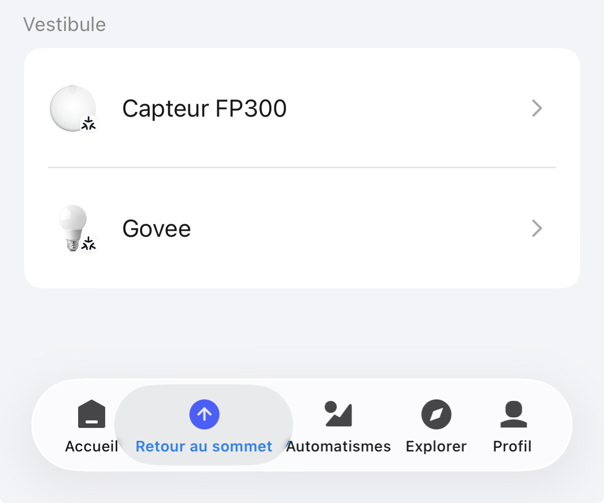 To automate the lighting in a hallway, the goal was straightforward: a light that turns on automatically as soon as presence is detected, with no manual action required. I therefore installed an Aqara FP300 presence sensor, which is particularly well suited to transit areas, and took advantage of a promotion to add a small rectangular ceiling light from Govee. The one from Aqara was too big ;-).