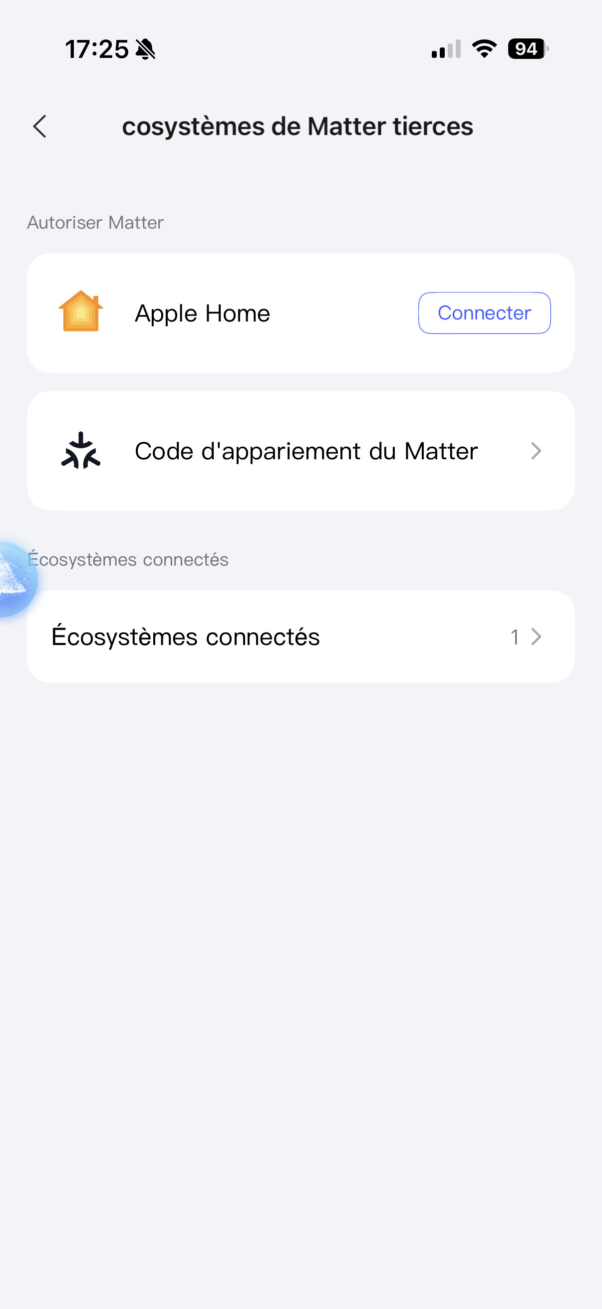 By the way, there’s a typo here. It should be « Code d’appairement de Matter. »