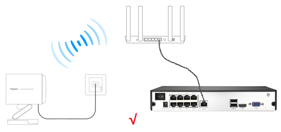 G5 Pro is Aqara’s first camera that supports the ONVIF protocol. Many users have told me that they expect to be able to view camera videos in both NVR and Aqara Home simultaneously. I have shown the correct and incorrect connection schemes in the following picture, please pay attention to the difference.
