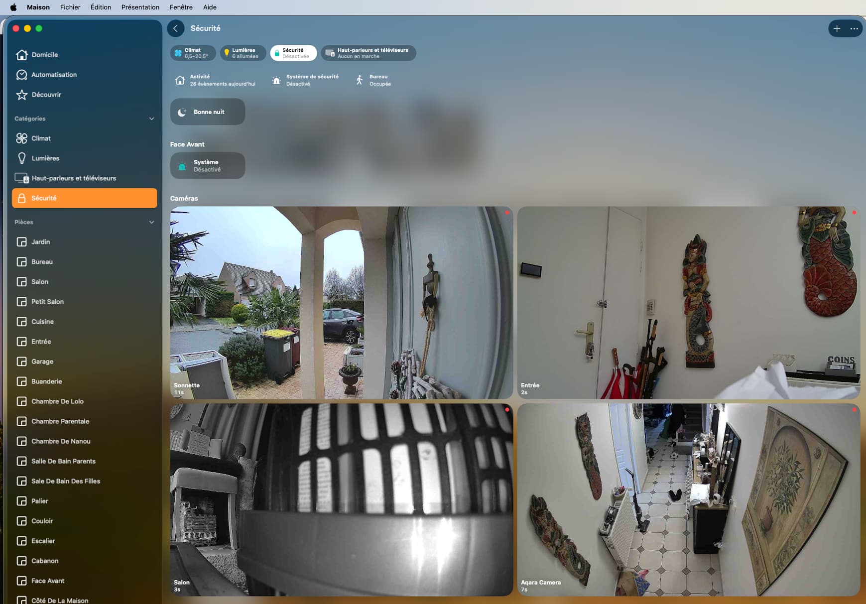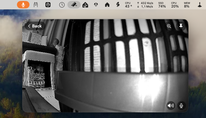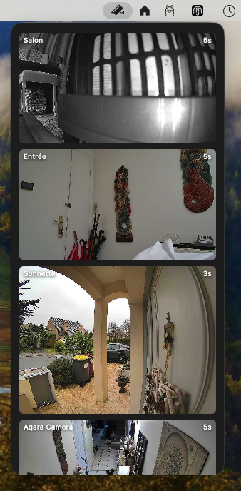 With a single click on the menu bar, you instantly access all your cameras and the doorbell without opening a full application. Access is immediate and very unobtrusive.