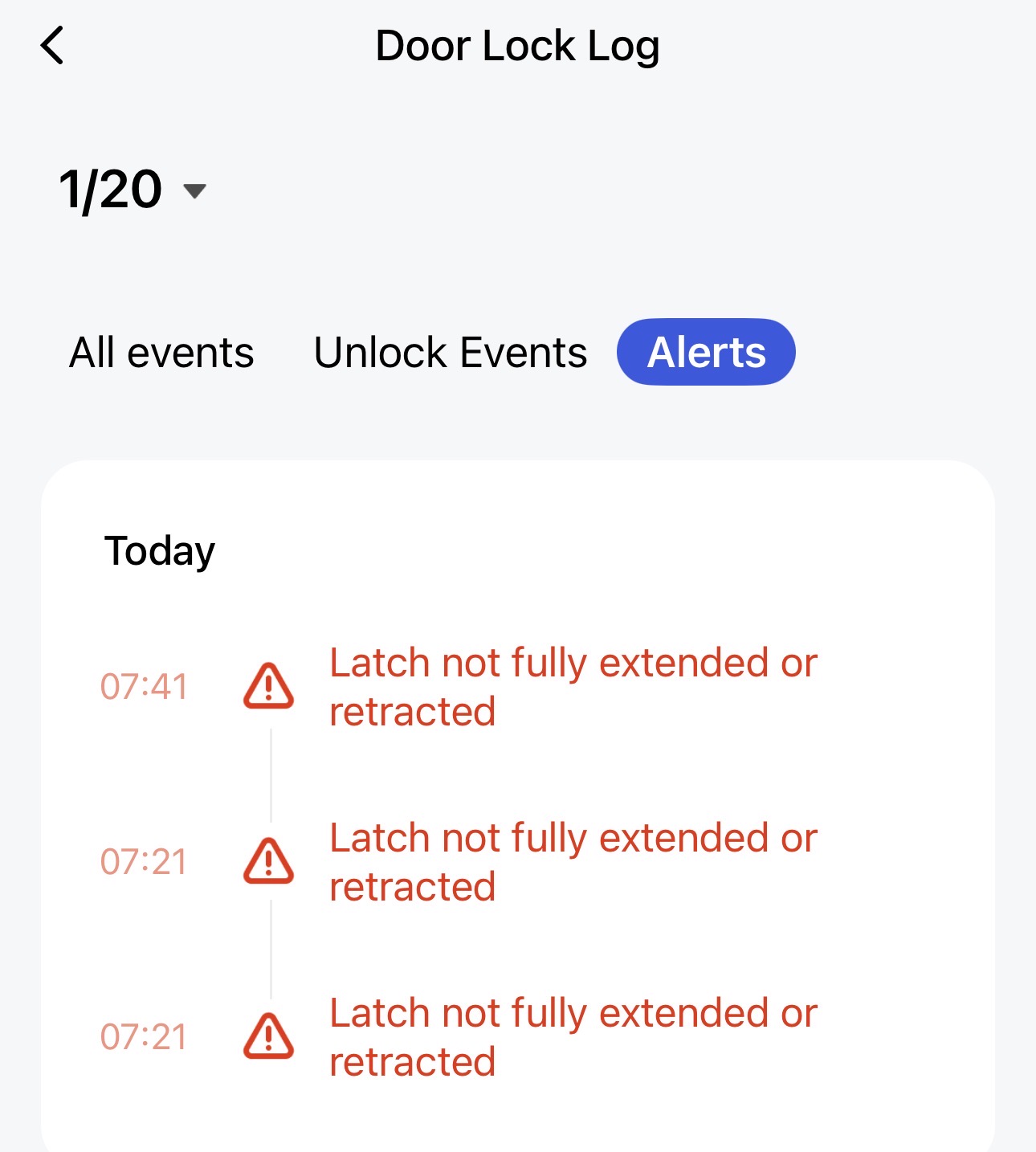 In the Aqara app “Door Lock Log” (Alerts tab), I regularly see alerts such as: