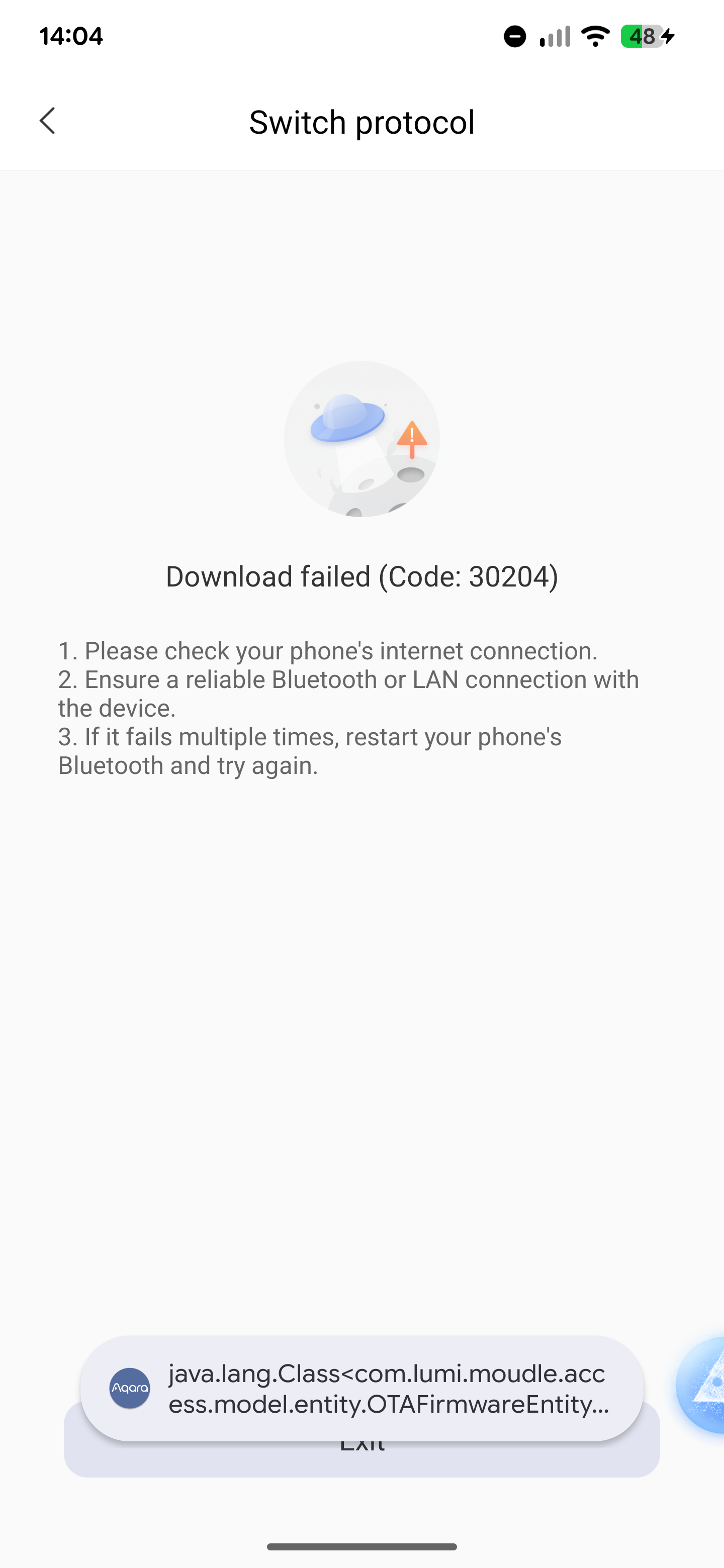 Same happens on mine but with the error code 30204. The Thread firmware update downloaded fine though.