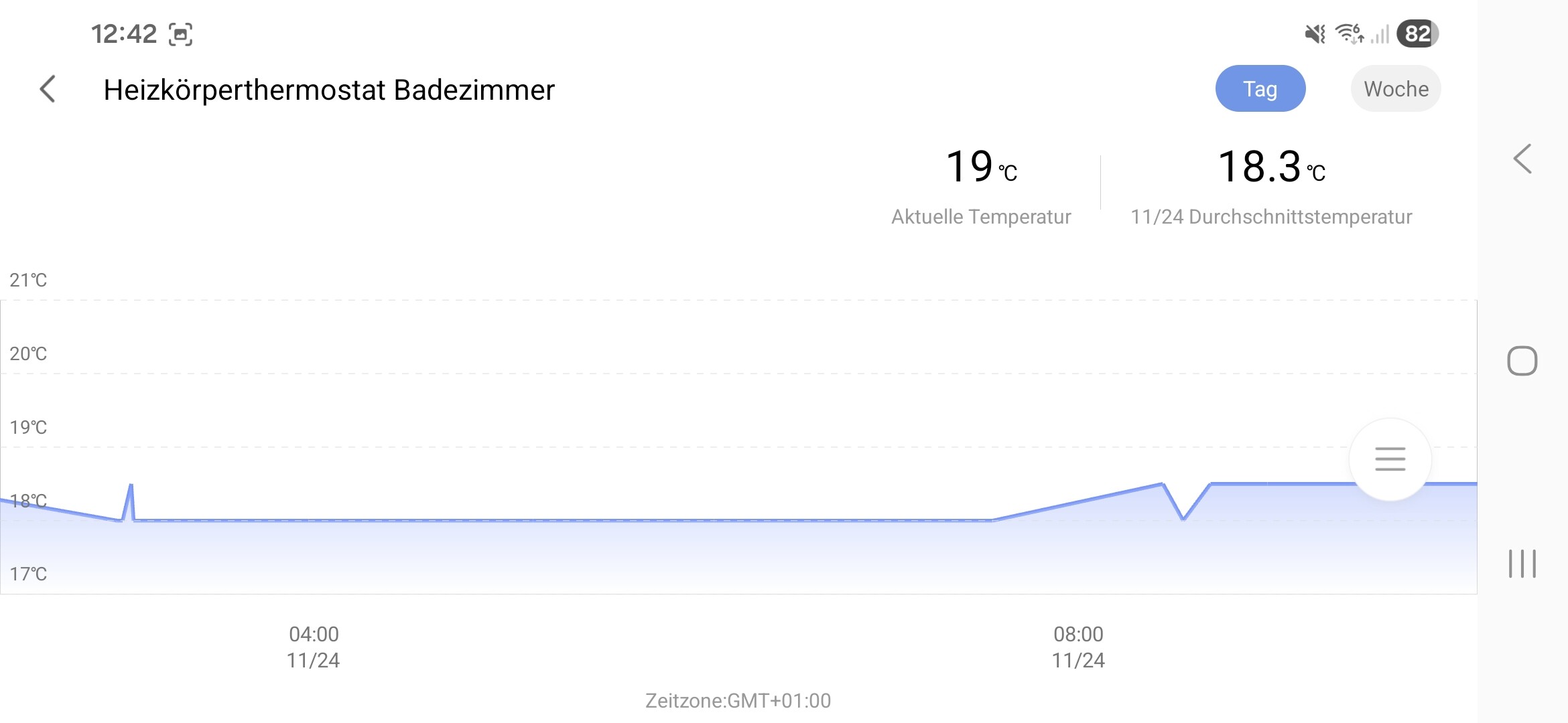 So even though the target is set to 22 °C, the room drops down to about 20 °C for a longer period during the night. I would expect the thermostat to keep it much closer to the target, especially in a closed room.