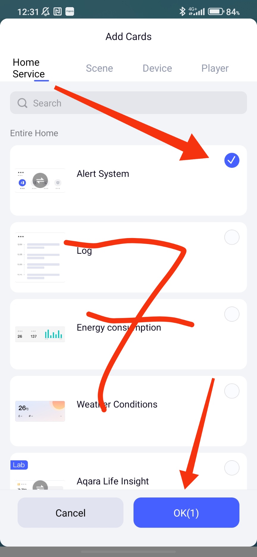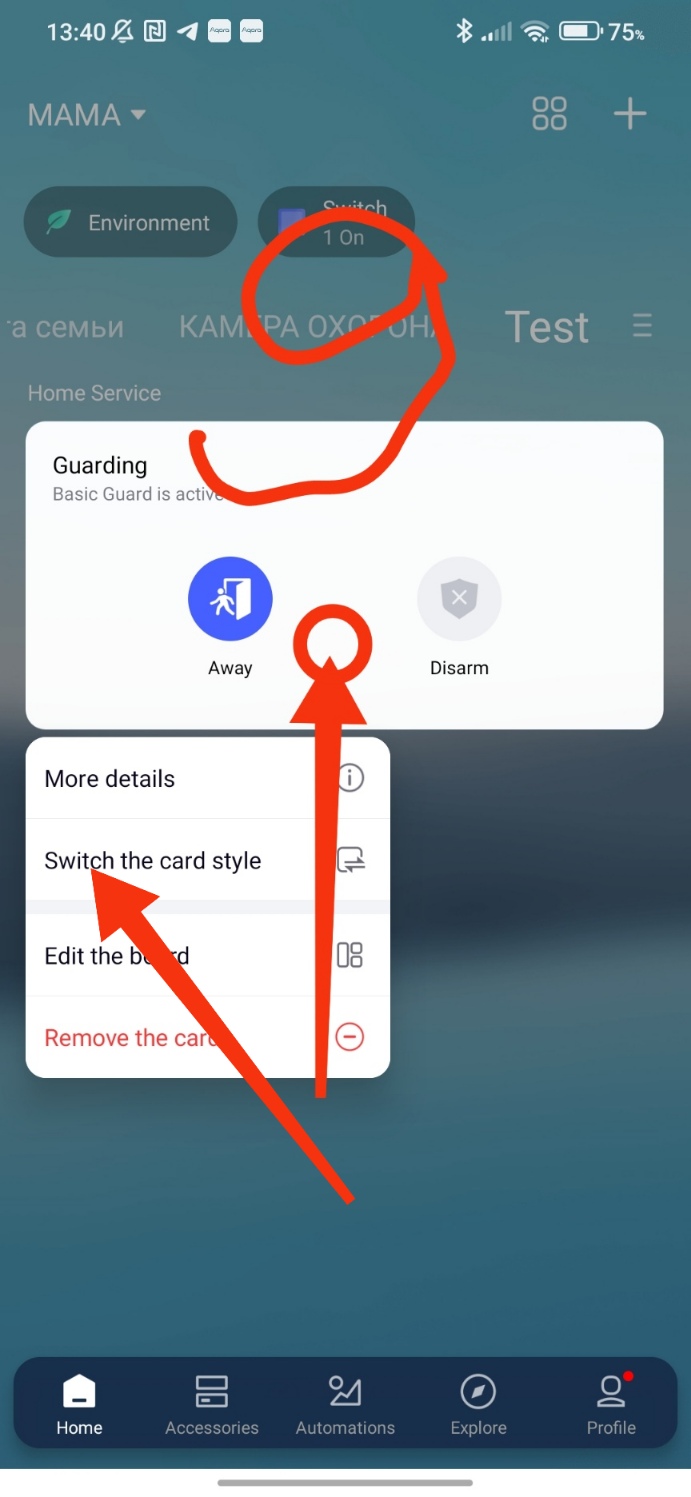 We received an Aqara security system card. This card has two views: expanded and reduced. Hold your finger on the card and select the icon size.