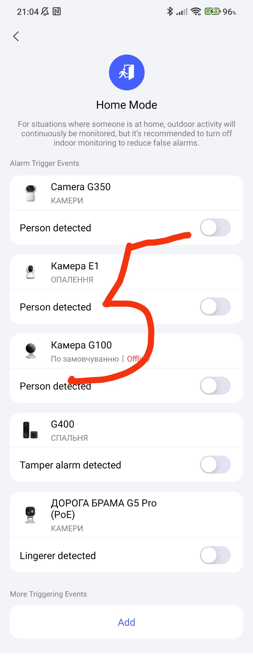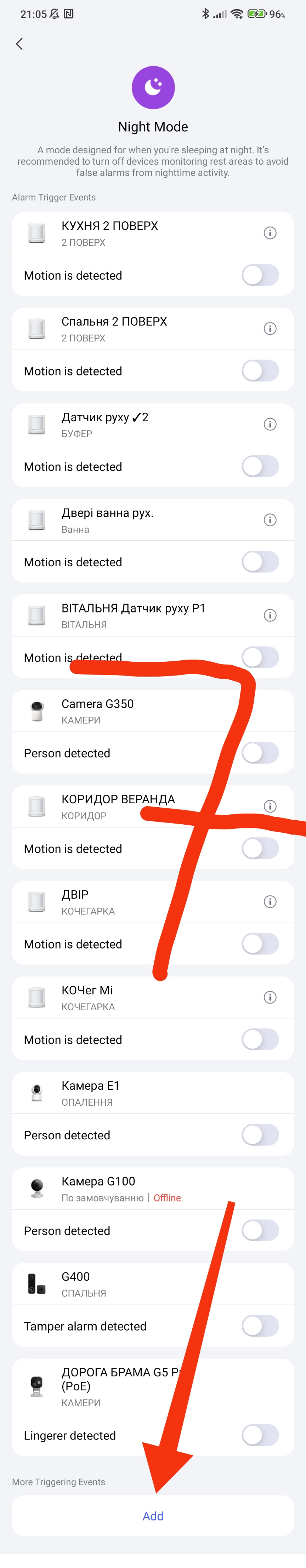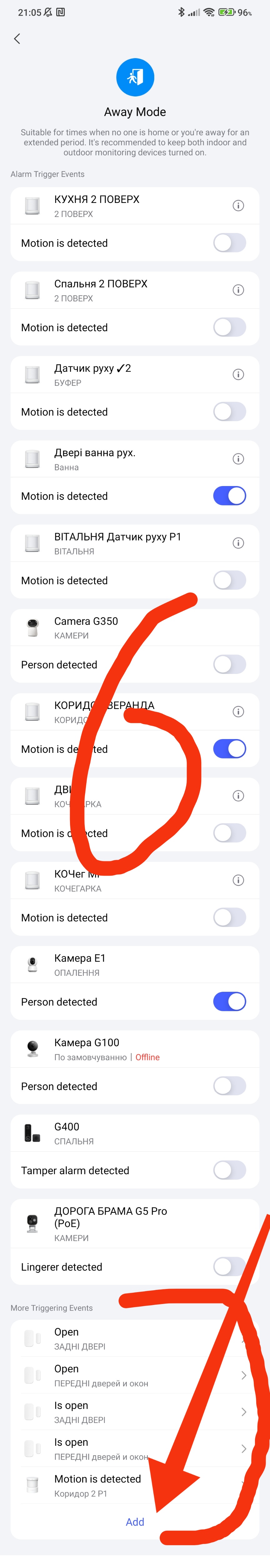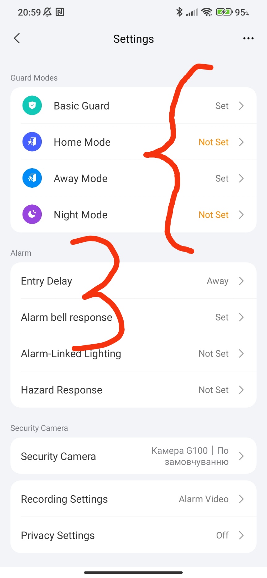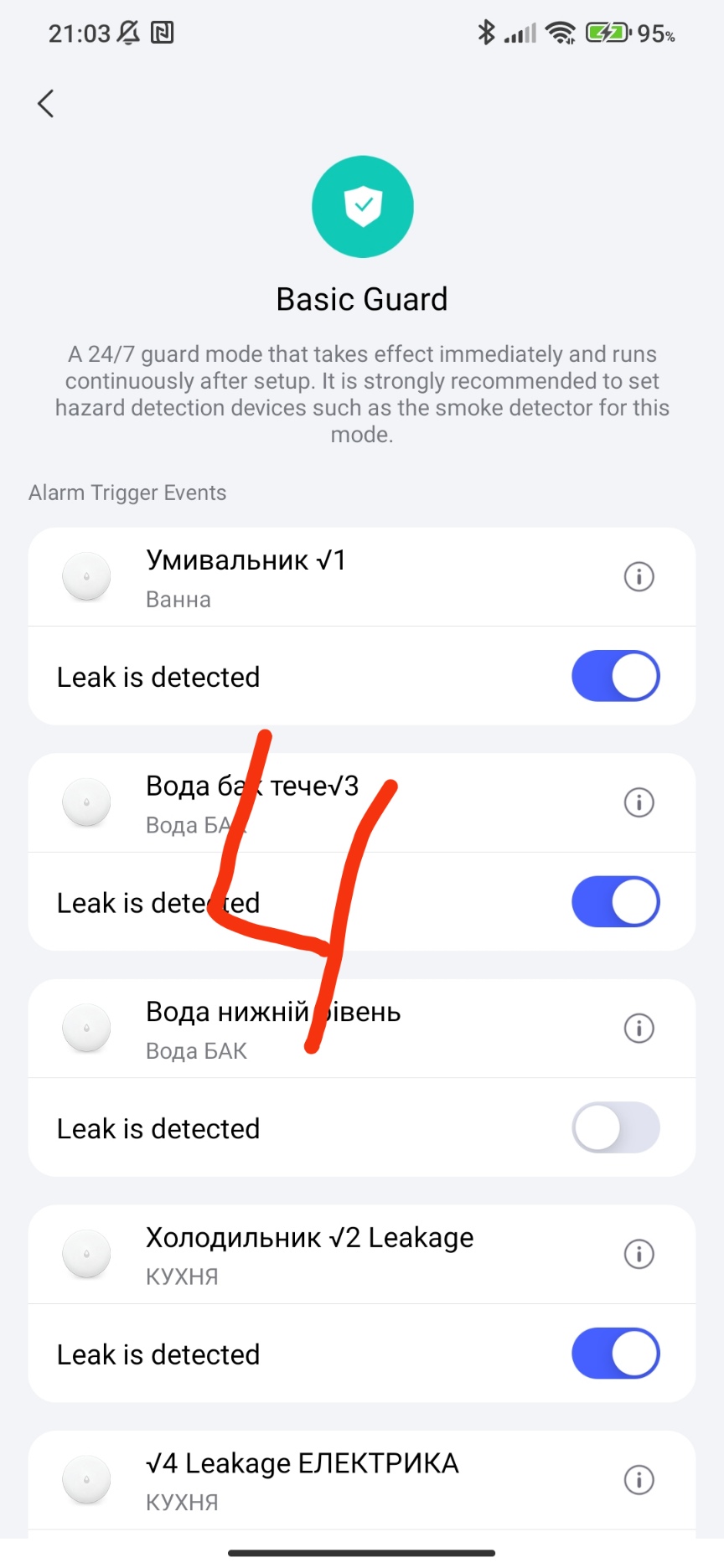 Next, I showed screenshots of each control mode. I made a long screenshot specifically so that you could see that all devices that can be used in a certain security mode are opened by default. There are many sensors in my house (Fig. 4a), so there are so many devices.