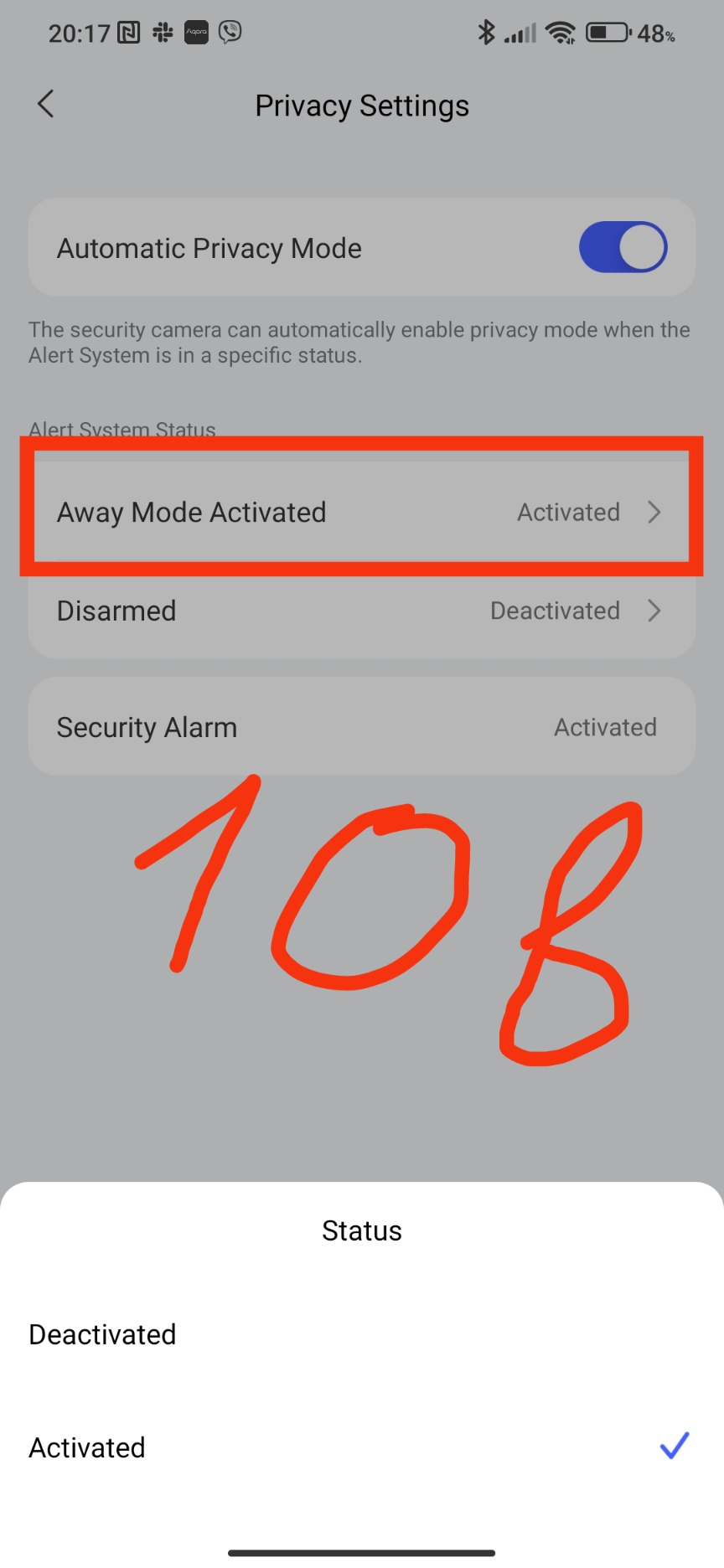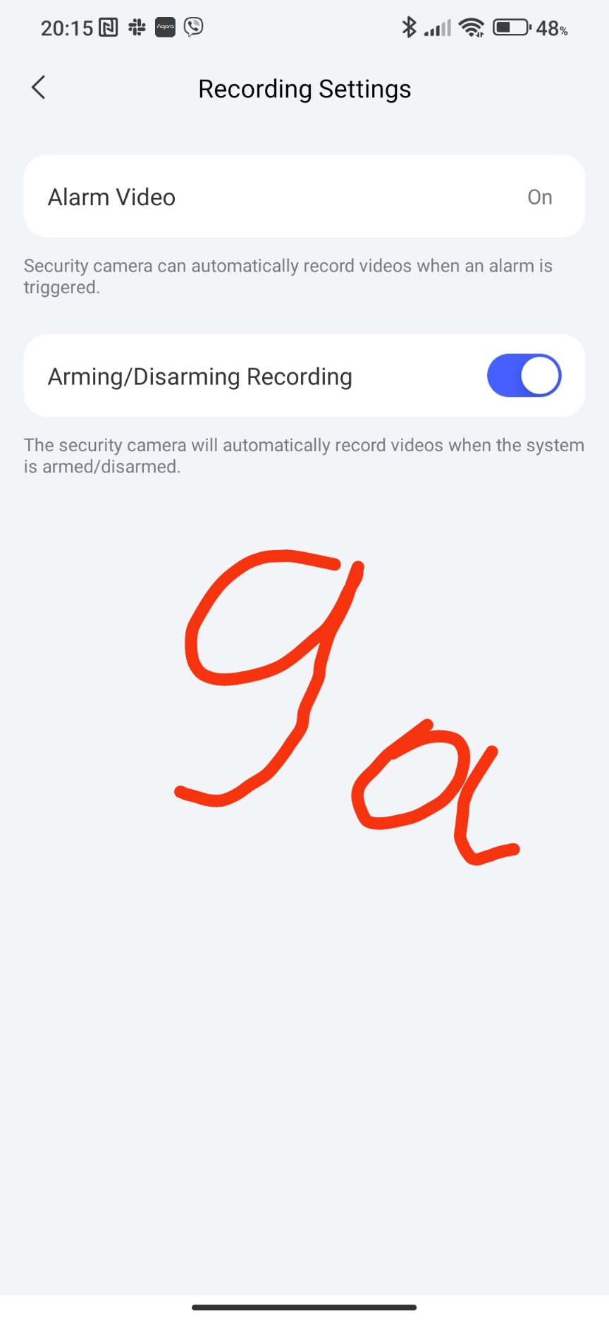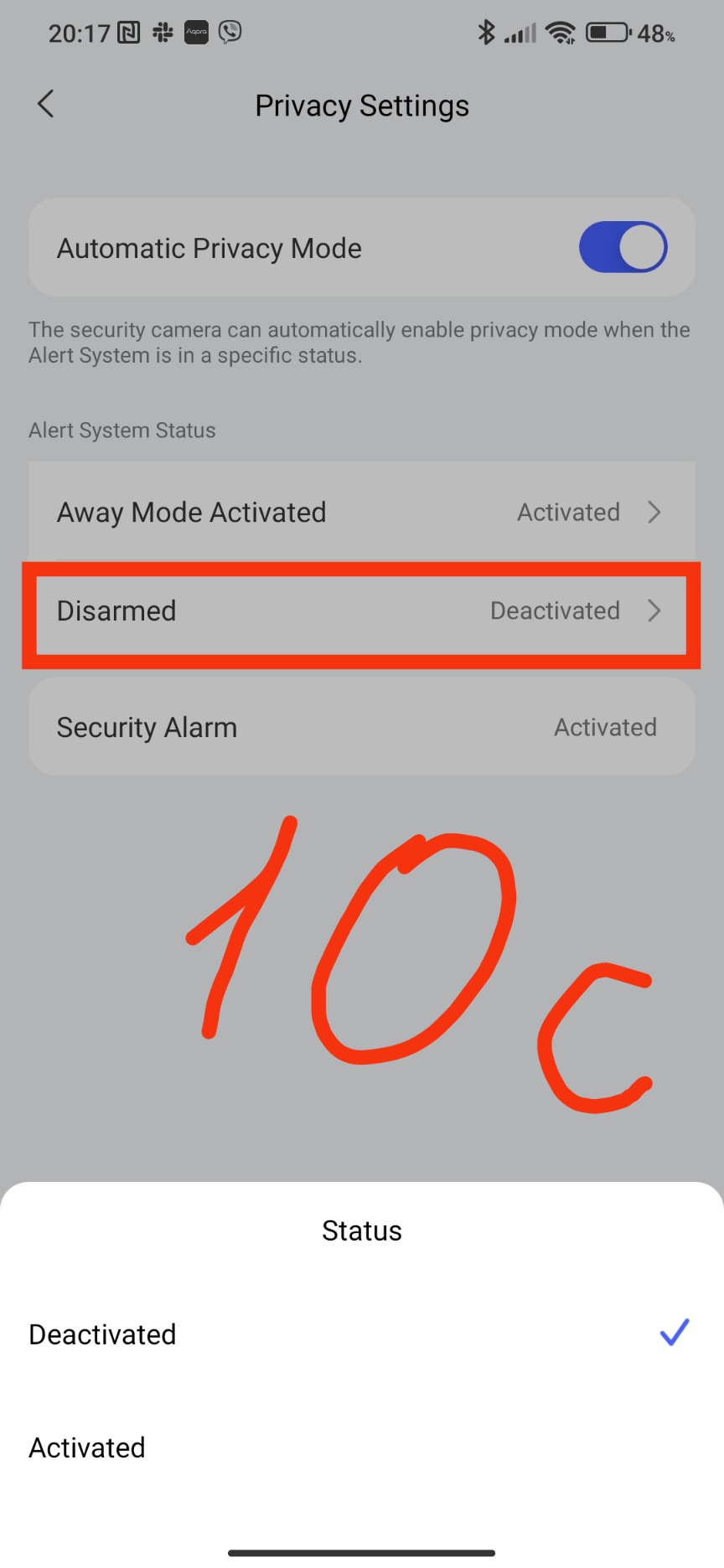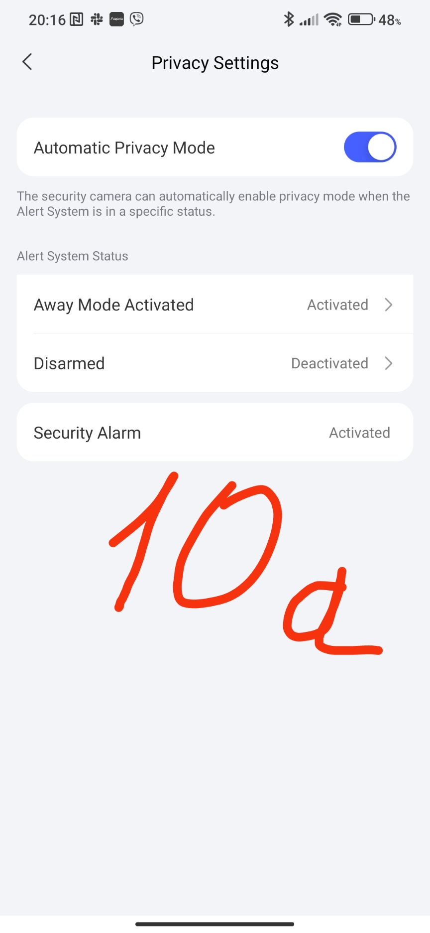 The last setting of this block is “privacy settings”. This setting allows you to turn on and off the camera’s recording. For example, I turned off the security of the house, then the camera stopped recording video, turned it on - video recording began.