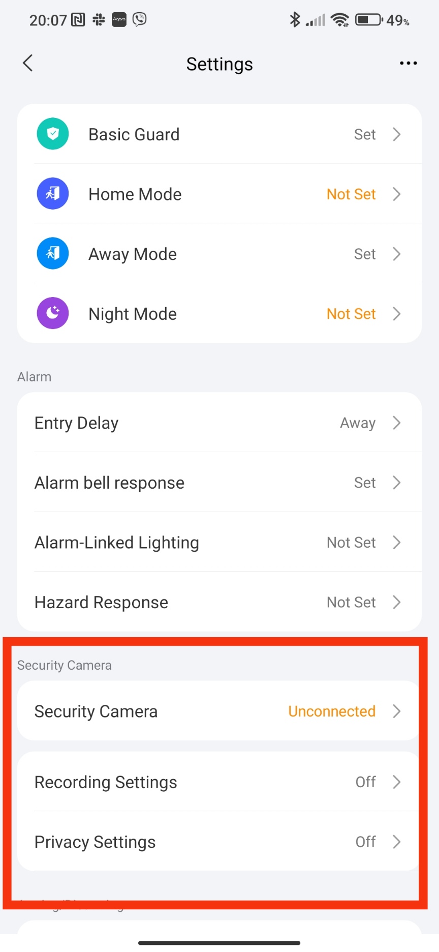 That’s it, the subscription is for one camera in the house. Now let’s look at the settings that have opened for us in the security system.