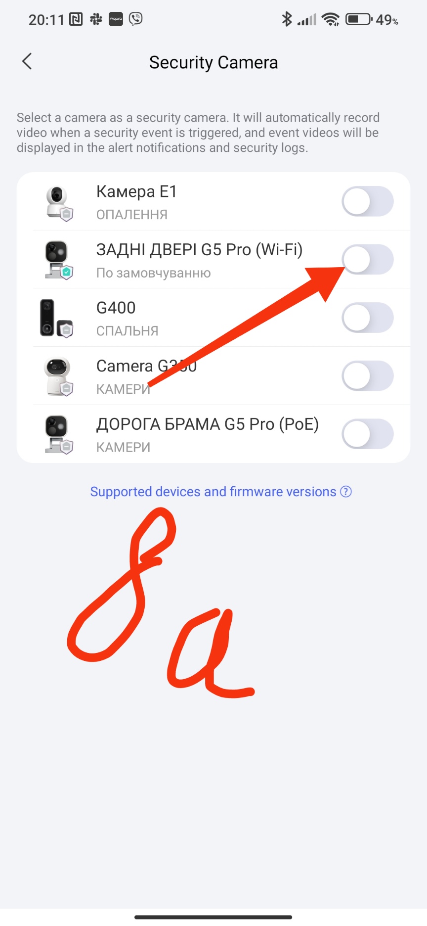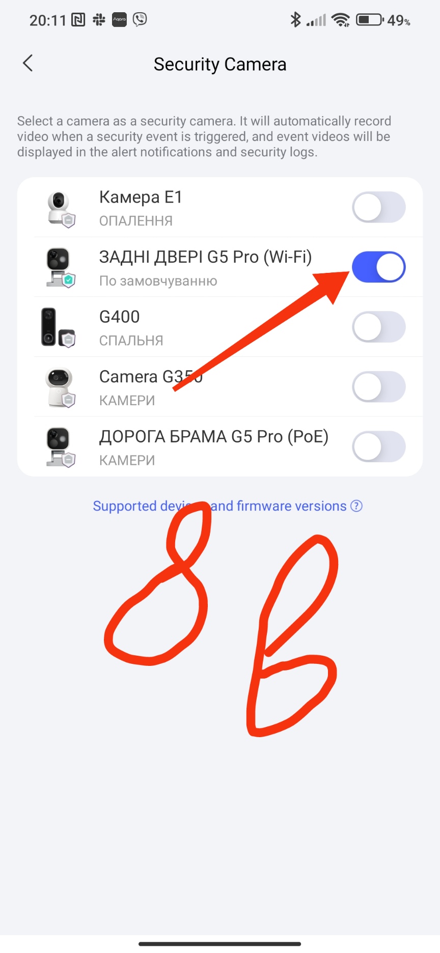 To activate the security camera (in our case, only one camera) you need to configure it according to the pictures in the “security cameras” section.
