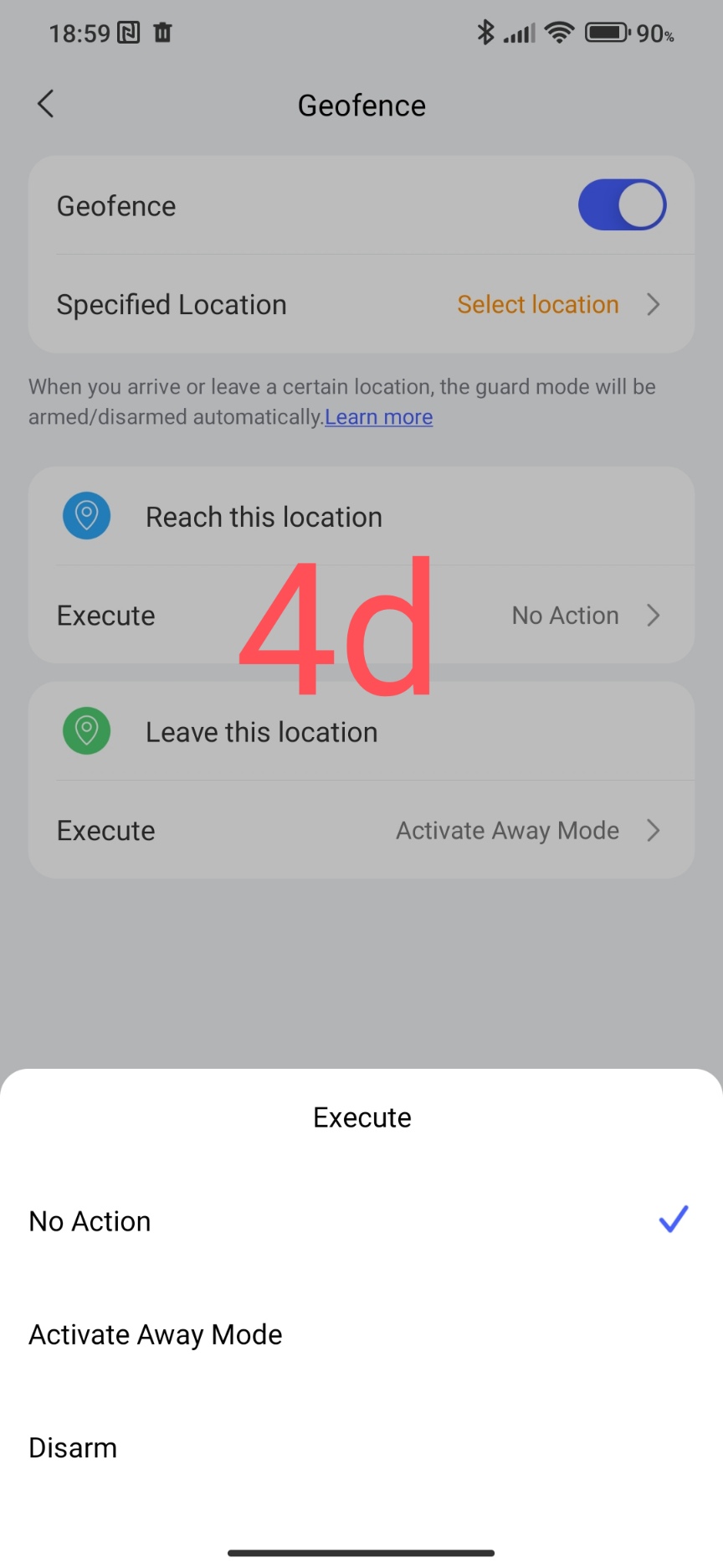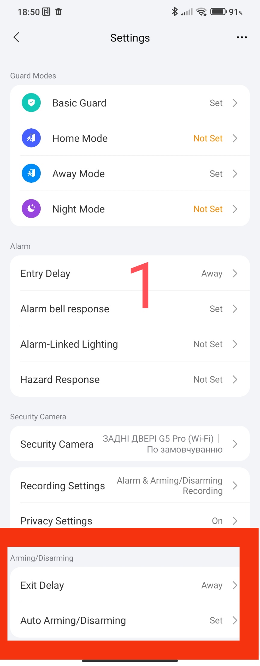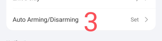 This settings section allows the user to choose the methods of arming/disarming the security alarm.