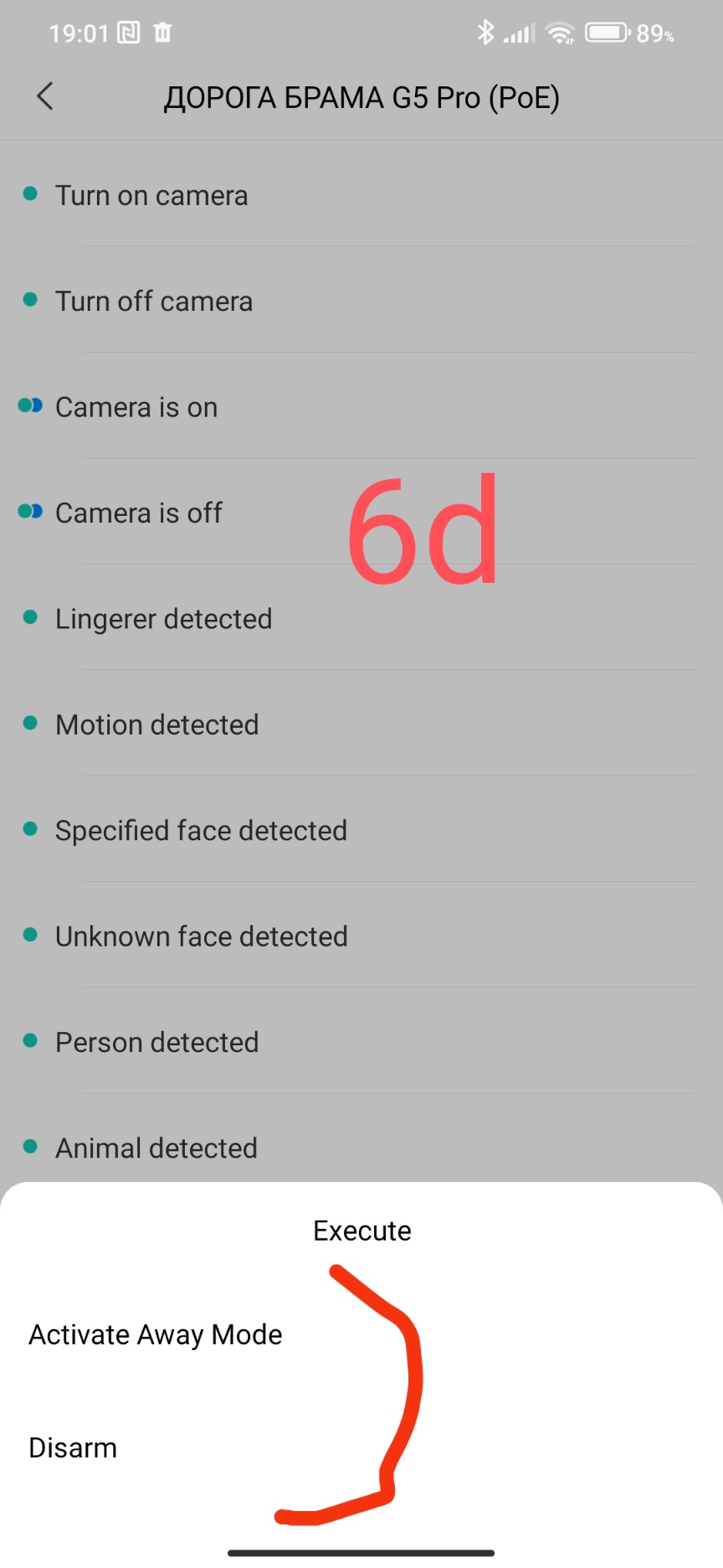 As an example, using the G5 camera, you can turn on/off the alarm. If the G5 camera is “On” then turn on the alarm. If the camera is “Off” - turn off the alarm. You can use the G5 camera On/Off to control the alarm.