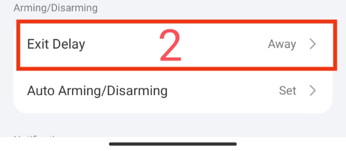 The “arming delay” setting makes a timeout after arming the security. This allows the user to arm the security and leave protected room for a certain time.