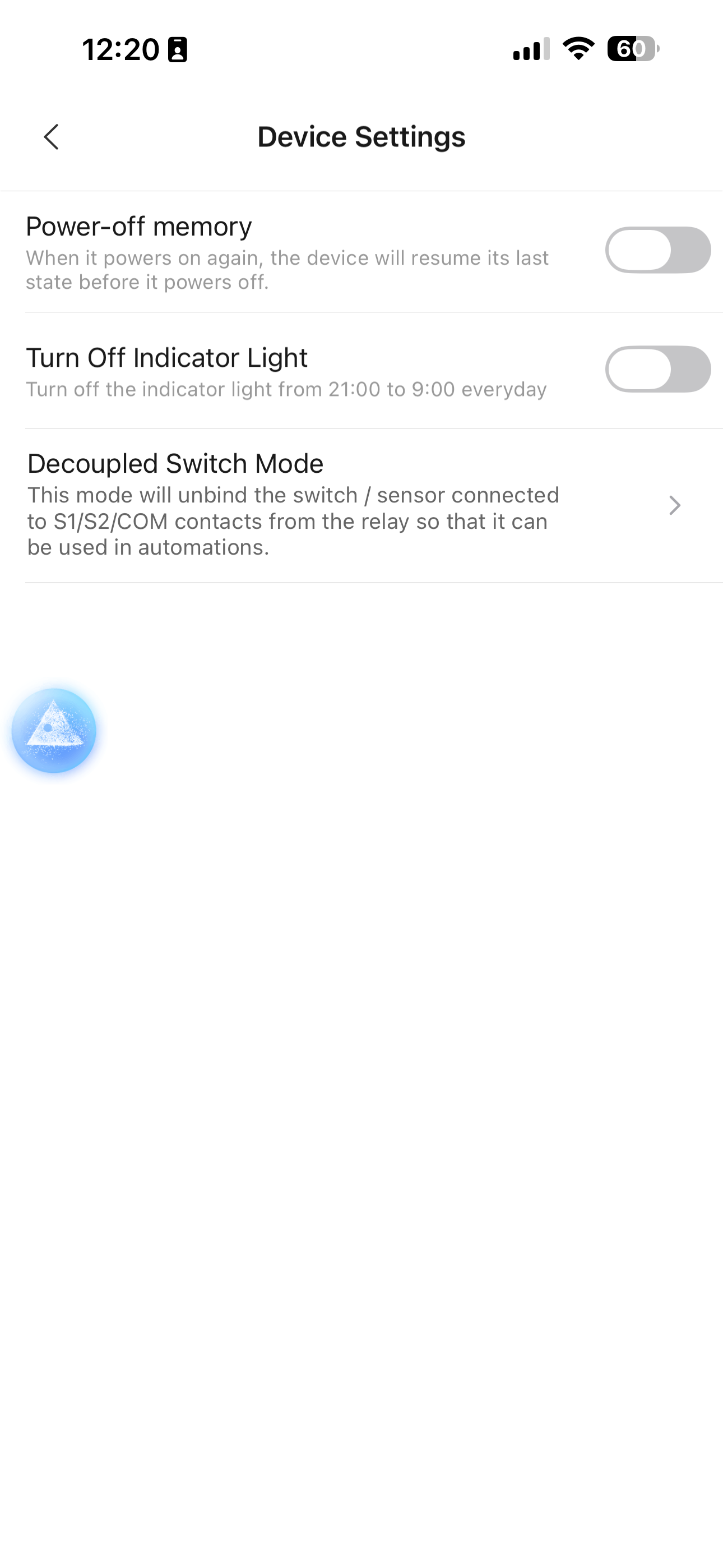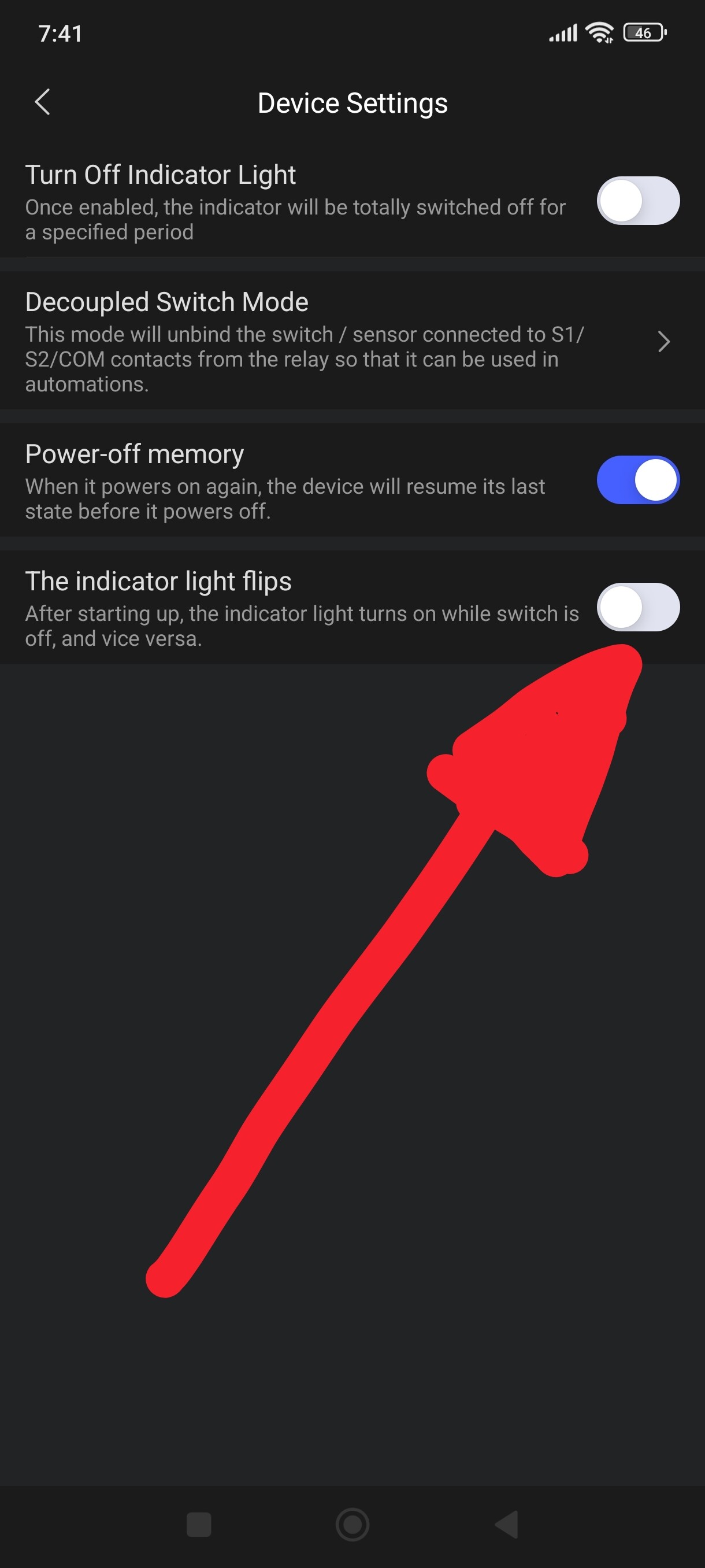 I wish for the indicator lights to be on when the ceiling light is off so I can find the switch easily in the dark. However, there is no option for that on the app.