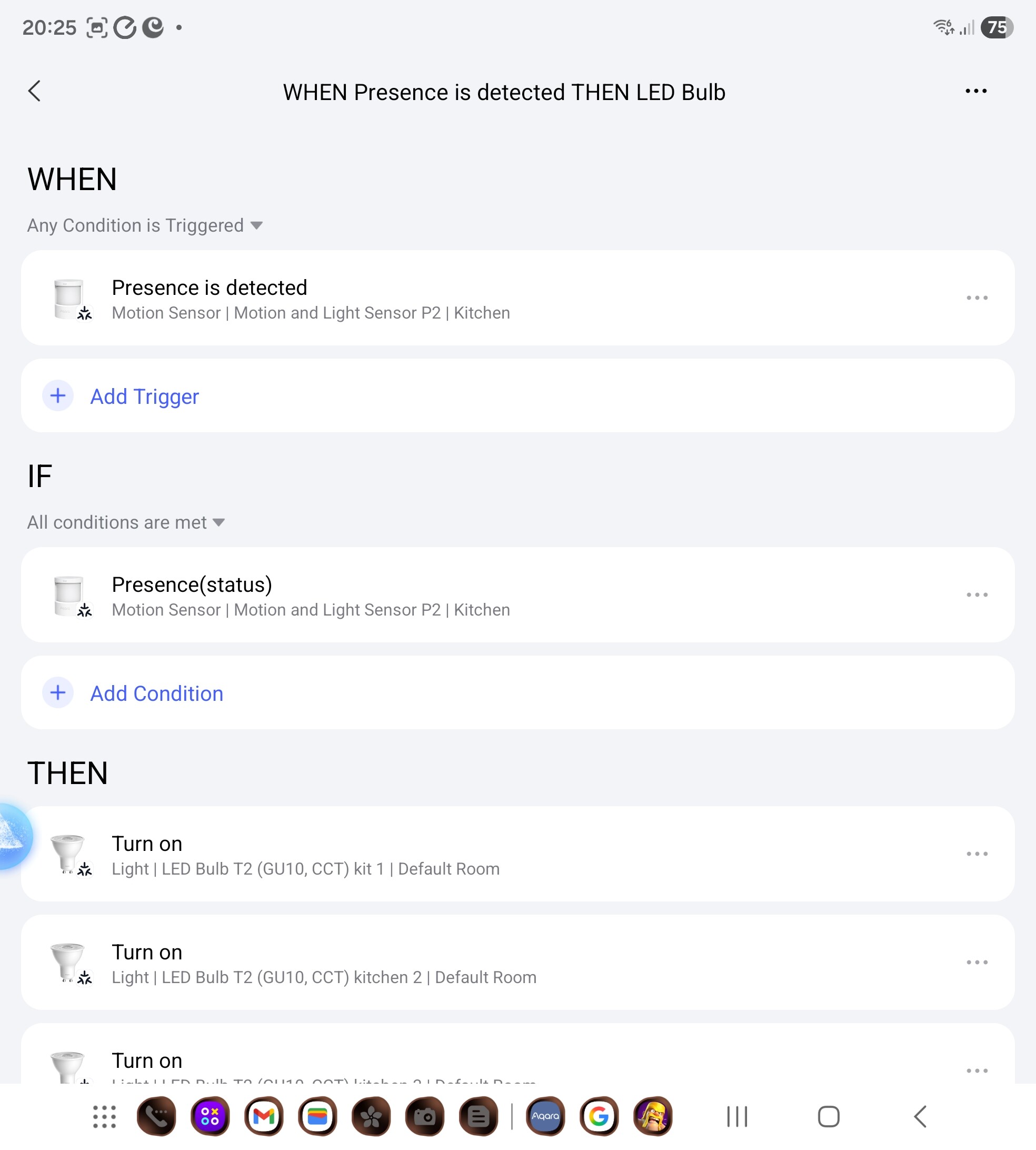 Everything is set up and updated. But for the life of me i can seem to get a basic lighting automation to work… really simple i like to walk into kitchen and those 7 little gu10 light bulbs to fire up. And then i leave to room for then to turn off… but no it been hell… sometimes they come on and other time no…
