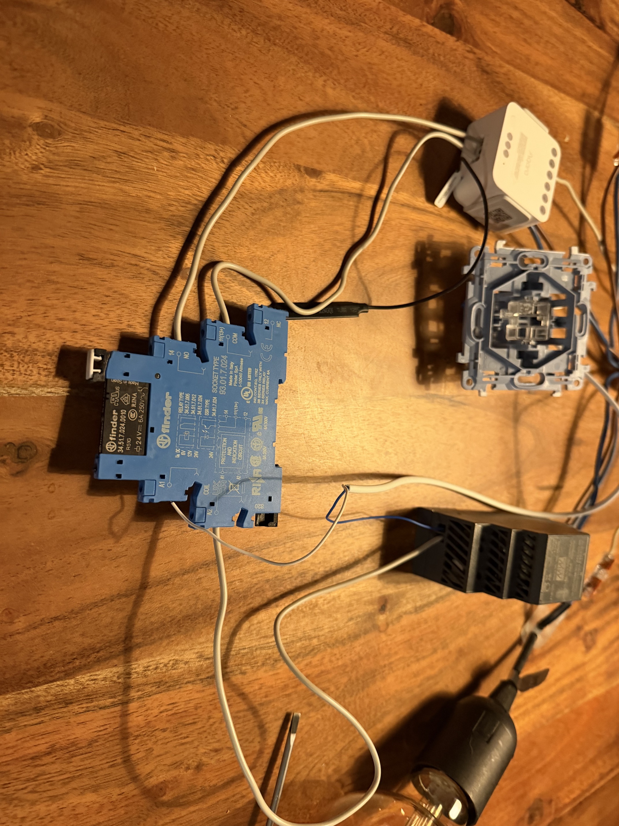 Coś takiego chcę wrzucić ( zasilacz + przekaźnik FINDER Coupling relay with screw terminals, 1 CO, 6 A, 24 V AC/DC | Coupling relays at very favourable prices | reichelt elektronik - Aqara T2 wejascia S1-COM )