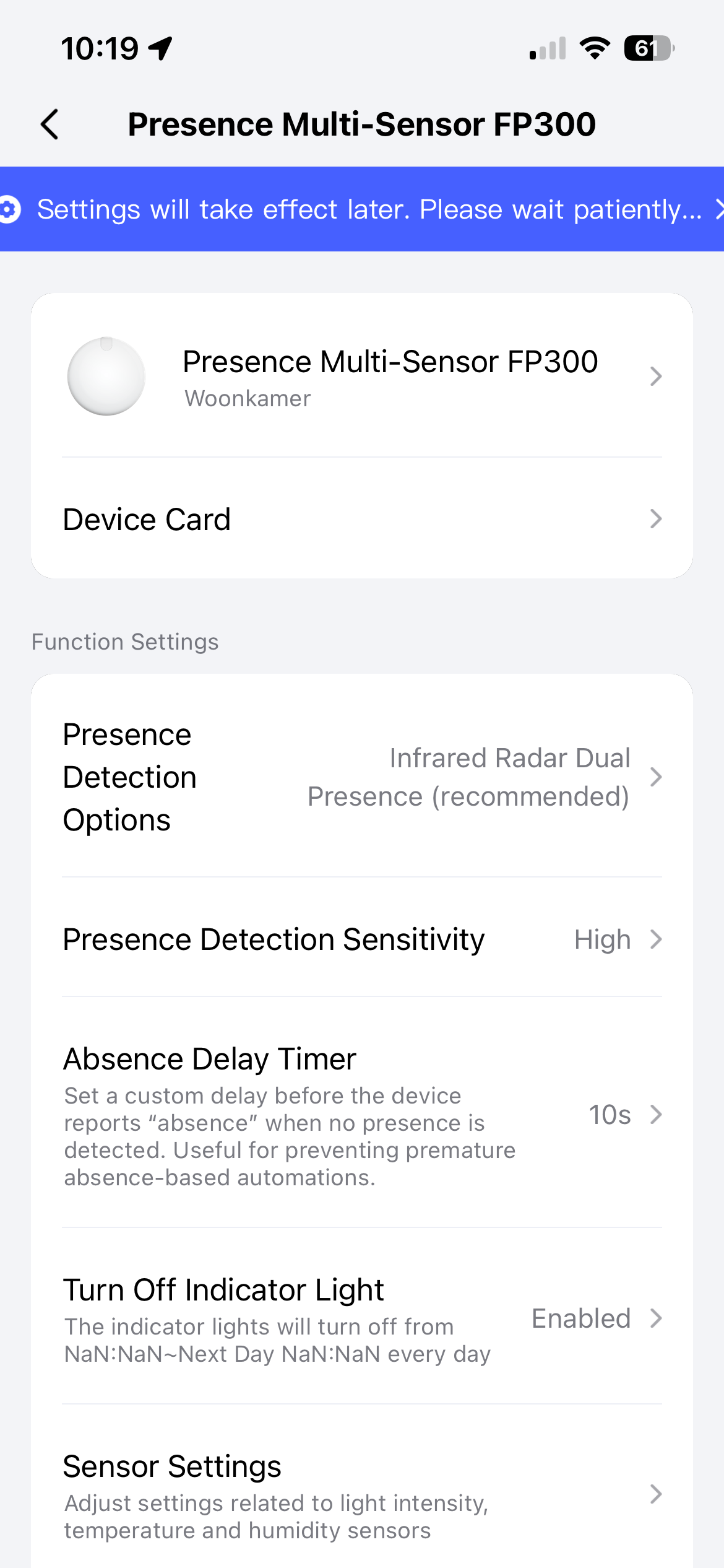 After changing a setting the blue bar pops up (see picture) and disappears after pressing the button on the device but shortly thereafter it comes back.