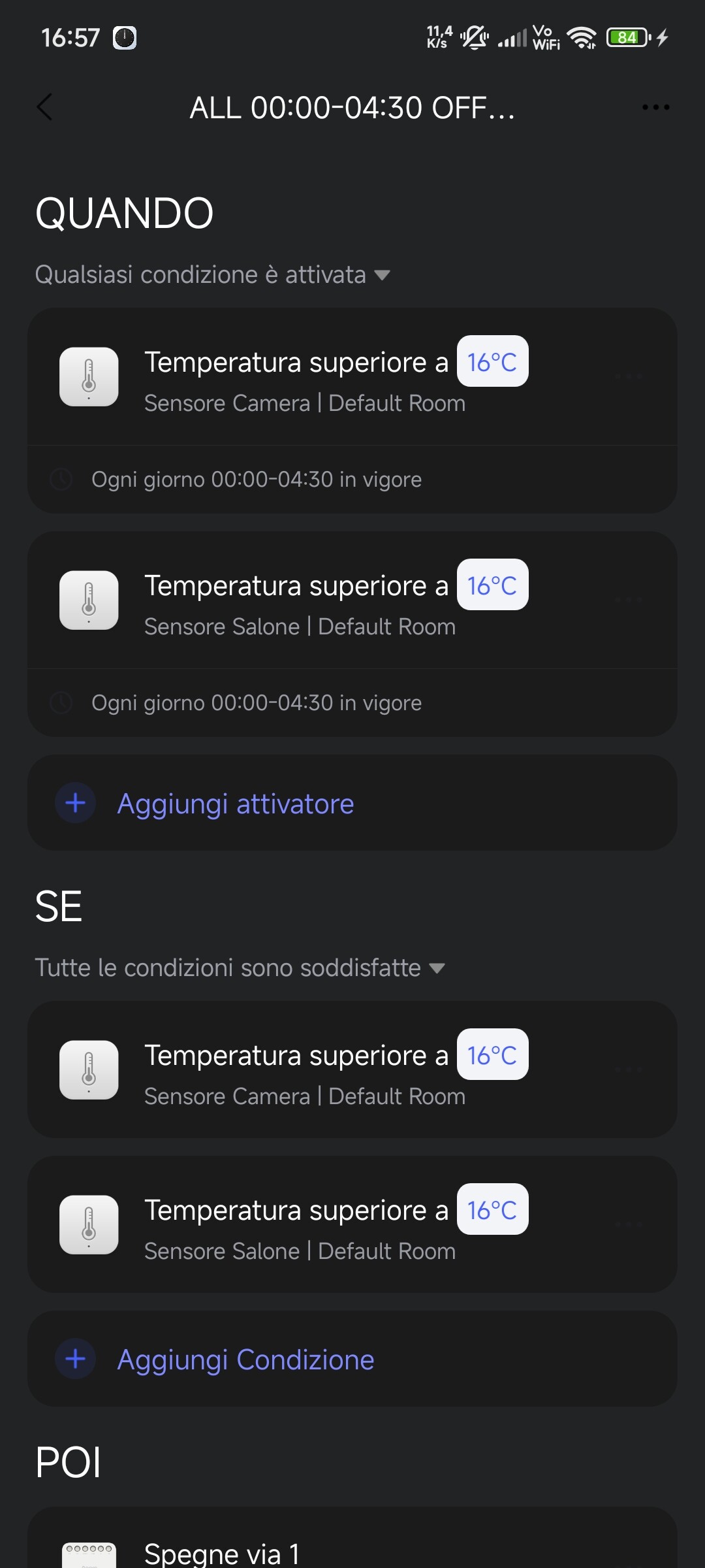 Good morning, I have an M2 hub with a T2 relay that controls the heating via output 1. The relay is turned on and off based on conditions triggered by two temperature sensors. Last night, despite having been updated several times, the shutdown automation did not start, and there are no automations (ON/OFF) in the time slot in which the two sensors were updated. I’m attaching the data from the two sensors, the automation list, and the on/off automation settings. Thanks to anyone who can help. ALL automation is local. Time problem is from 01.23 to 02.13 when I pressed the refresh button on the camera sensor