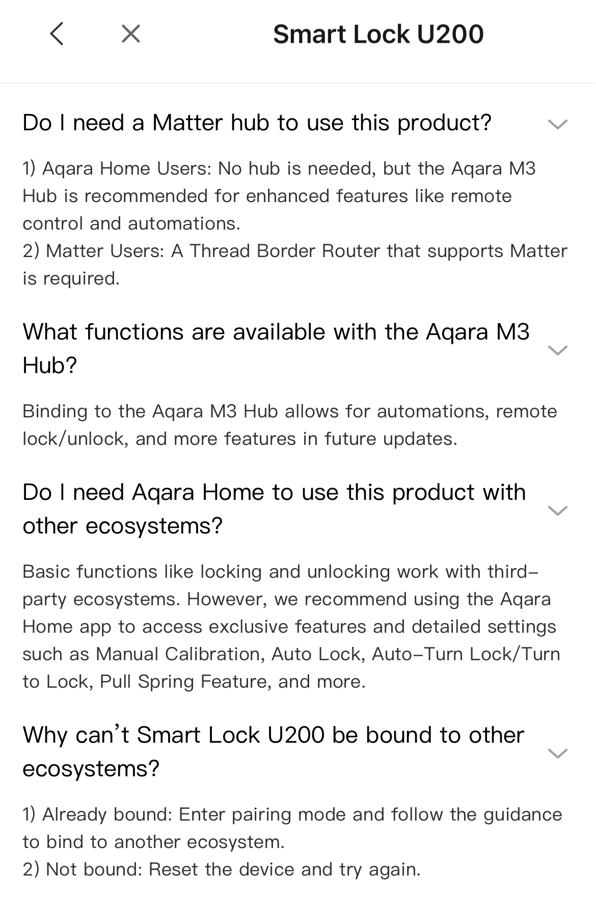 And yes, I reset the lock several times and then reconnected it to Apple Home and the Aqara app each time.