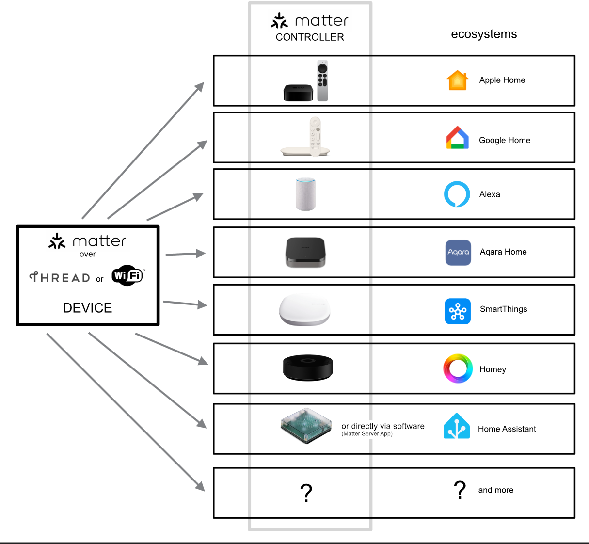 The key point is that Matter still requires a controller per ecosystem. You need an Apple TV or HomePod for Apple Home, a Google Nest Hub for Google Home, or an Aqara M3 (or another Aqara Hub as a Matter controller) for the Aqara ecosystem.