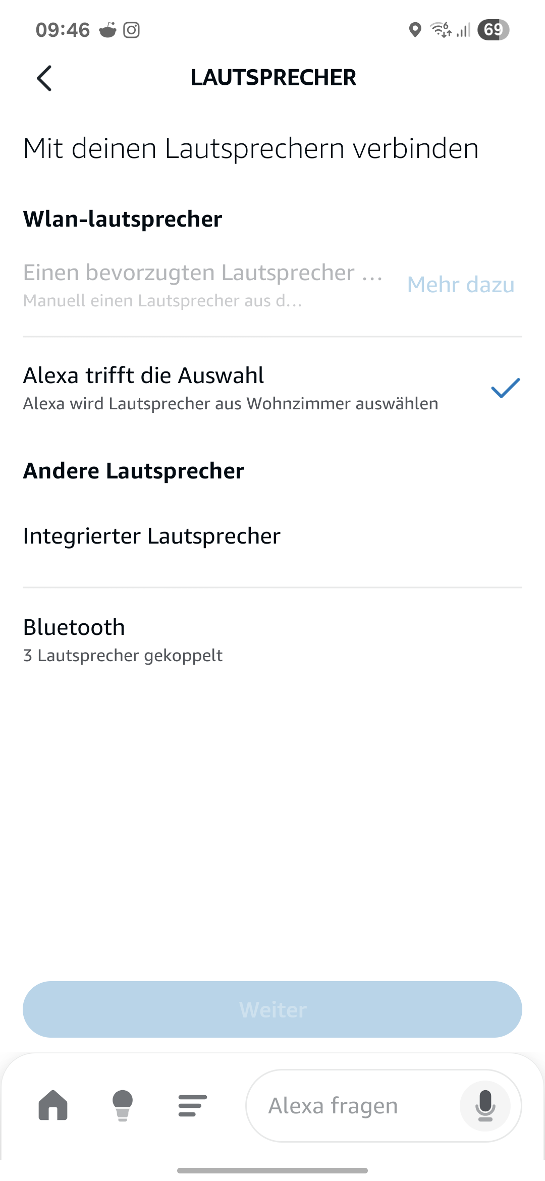 Der Echo ist auch Teil einer Gerätegruppe (das war am Ende egal) und mit ihm sind Bluetooth Lautsprecher verbunden.