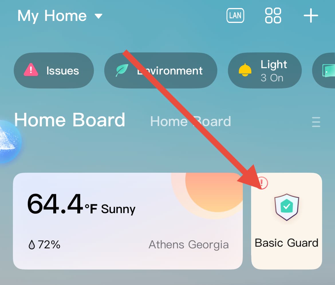 On your Home screen click the hamburger menu, then edit dashboard, then “Add Cards”, then “Alert System.” Then follow the steps from my previous reply.