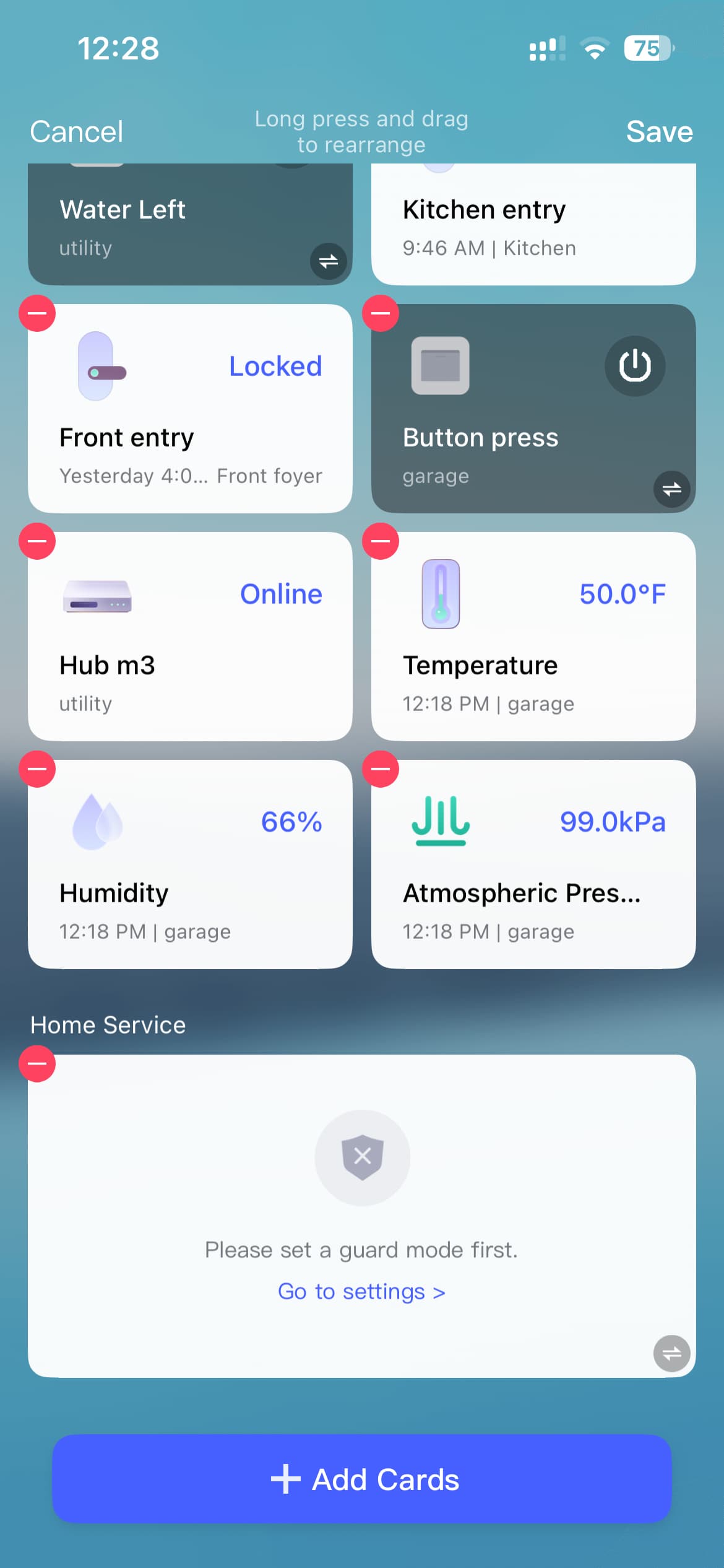 I eventually did get to a “Home Service” and it needs to have the guard mode set. When I go to that setting, I enter into a series of screens for setting up the Aqara Alert System. In those screens, I cannot see the door open/close sensor.