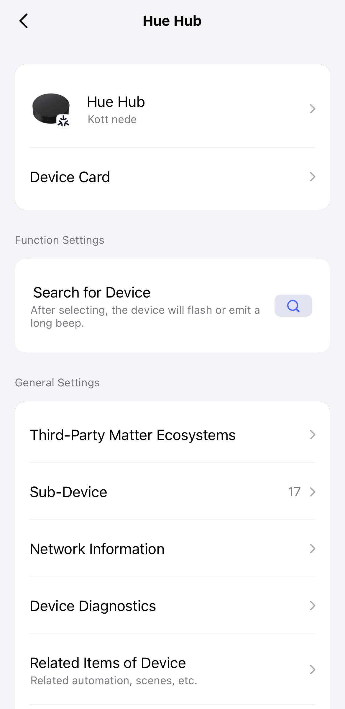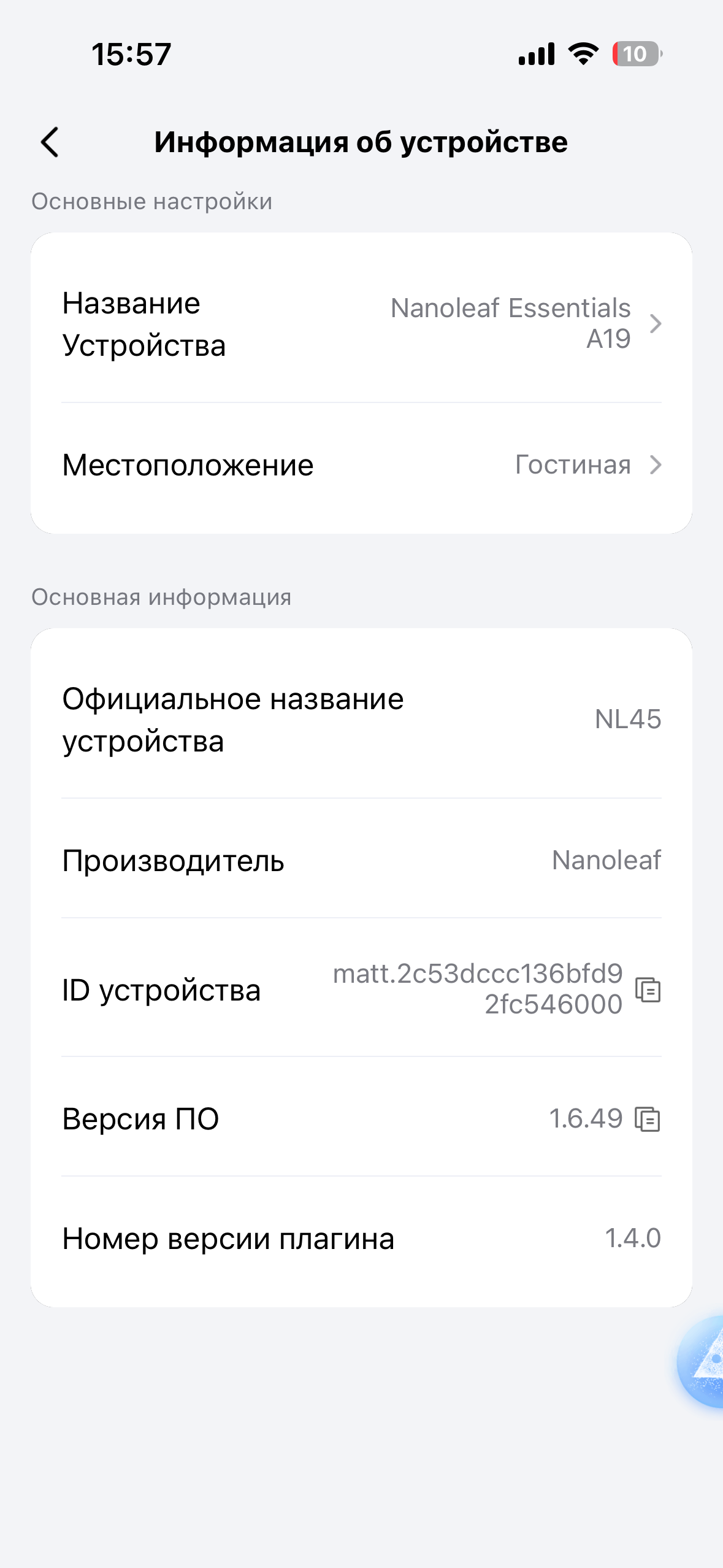 • Brand, model, and type (e.g., smart plug, light, sensor).