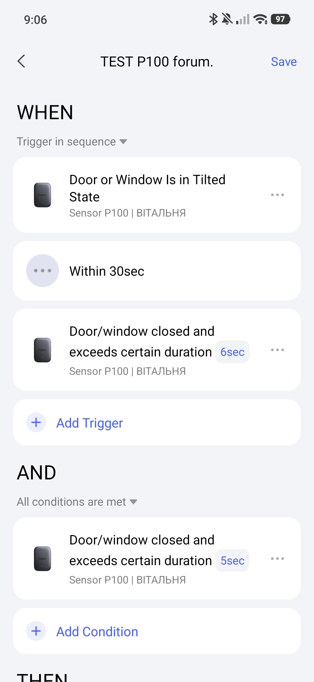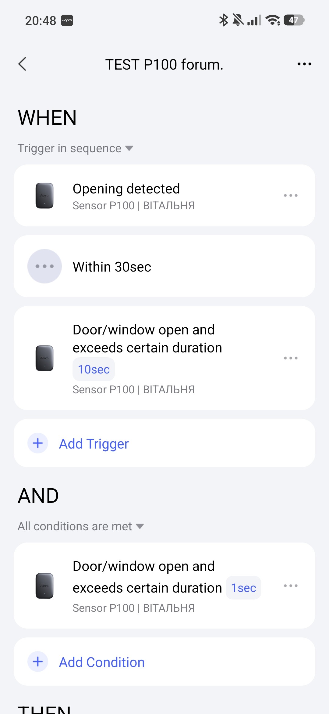 Hello, @MakerMing, I would like to ask you to add the “Duration” option to the WHEN “…” section in the automation for the P100 sensor. Explanation: this option will allow for more flexible use of the P100 sensor conditions in the IF section.