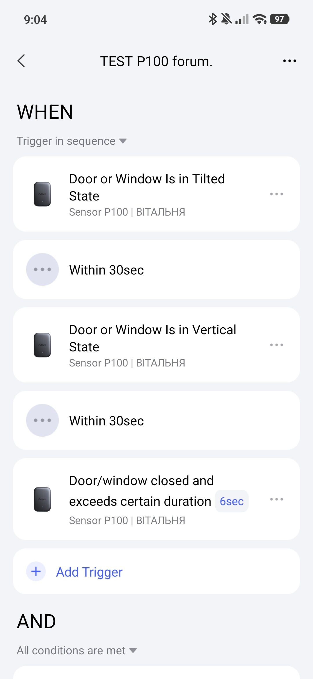 Explanation, inserted mail (there was a tilt), correspondence went into the box (exactly the sensor), no movement for 5 seconds - a notification went. We specifically omitted the exact sensor in the condition. Also for information, the 30 interval between conditions is the interval during which the condition WILL BE EXECUTED, in our case it is 5 seconds of no movement. Read my lessons, it is written there.