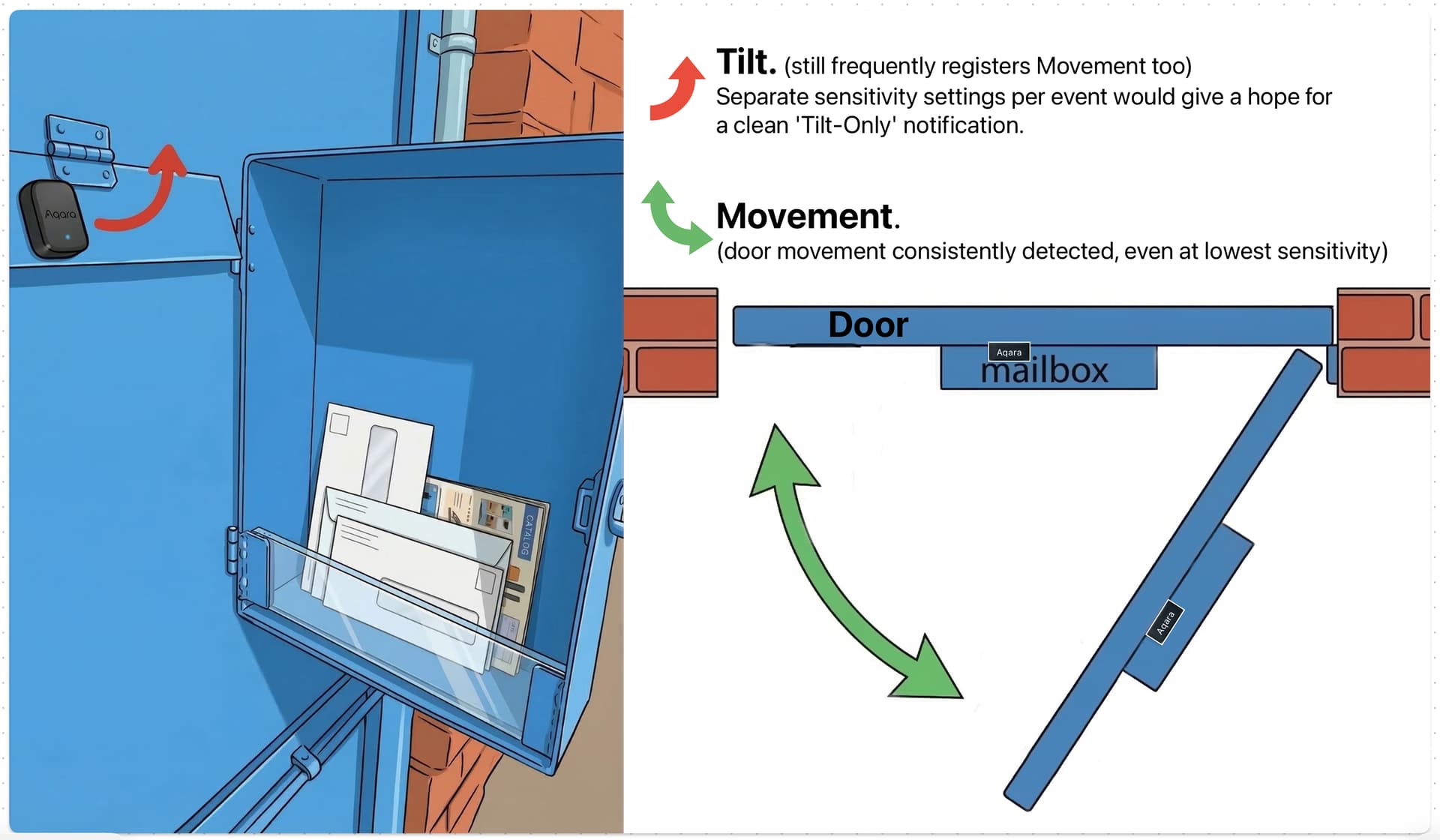 @MakerMing, perhaps it would be useful if we could adjust the sensitivity for each event separately? Lowering the “Movement” sensitivity while increasing the “Tilt” sensitivity could potentially allow for a clean, distinct ‘Tilt-Only’ detection, I think. Or is it more about instant velocity, not a distance of relocation… (Either way, separate sensitivity settings for different events would be useful in other setups too.)