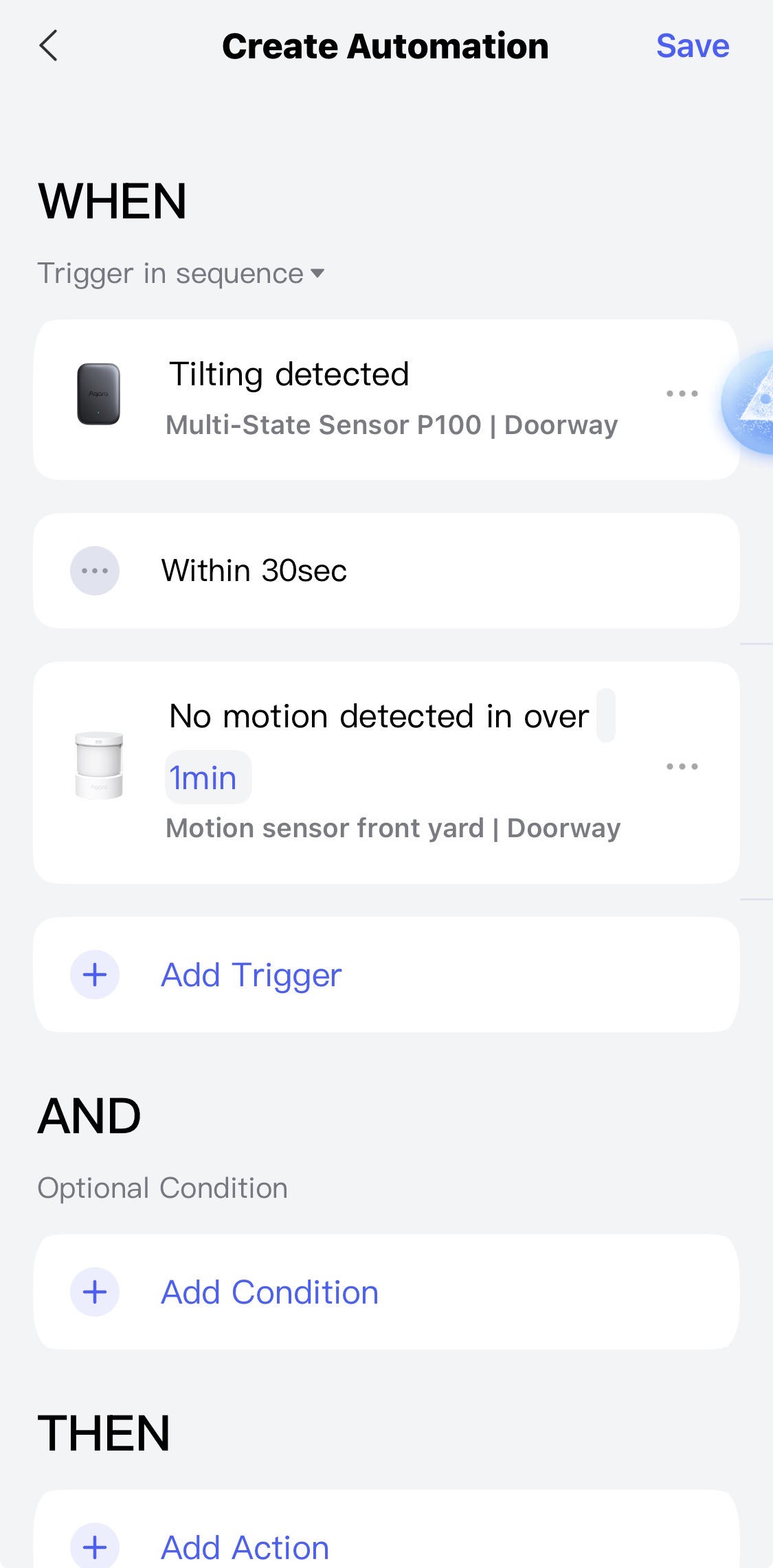 Since it is a multi-state sensor, it feels like it should allow to create automations based on certain events not happening. By the way, I am currently testing it using the “Object monitoring” setting, rather than the “Door” type shown in your screenshots, and I have selected only “Orientation” and “Movement”.