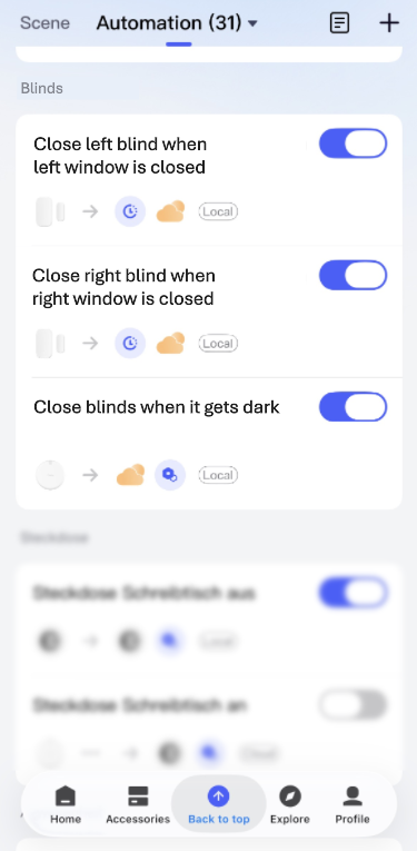 We had our apartment furnished with roller blinds, but we soon found that this was rather impractical as it meant that we had to open and close them all the time. This constituted my initiation into the realm of the smart home. And yes, what can I say? I ended up with more and more devices and automations - these are just a few of them! So here’s my video. Have fun!