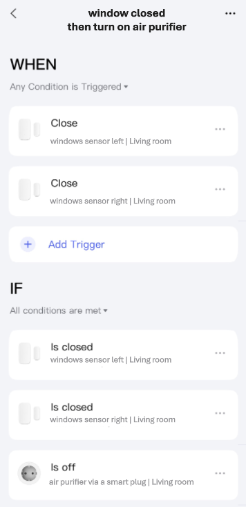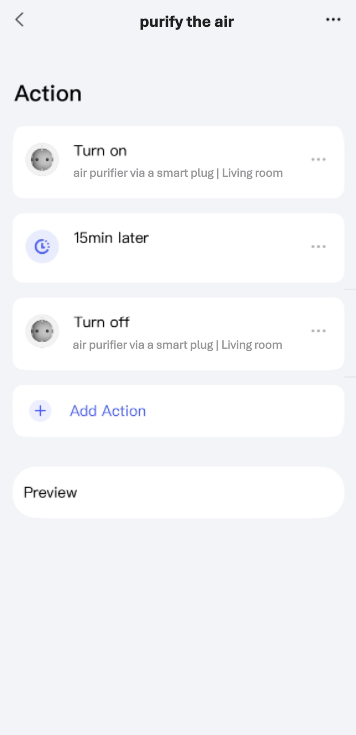 - Turns on the air purifier via a smart plug