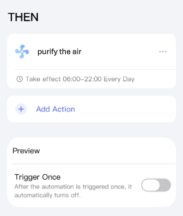 Scene that turns on and off the air purifier via a smart plug