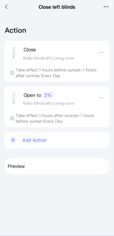 I created three automations for the roller blinds and grouped them under “Blinds”: