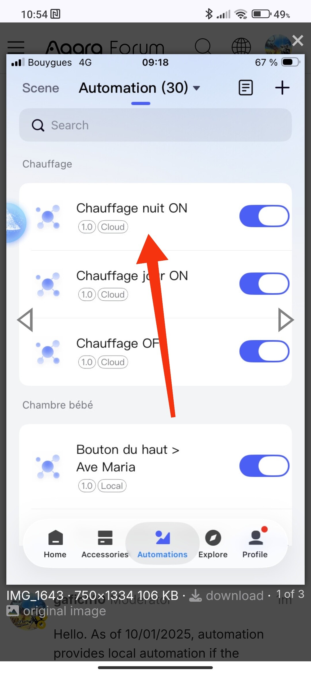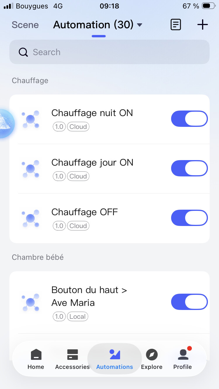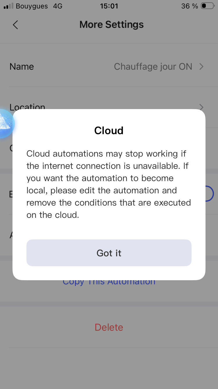 My problem is: some of my automations run through the cloud, but others run locally, including the automations that control my boiler (“chauffage”). I would like those automations to run locally but I can’t do it. I’ve tried to set the automations from scratch and they use the cloud by default. I can’t changé it in the settings. I’ve made sure all of my accessories are connected to the same M3 hub.