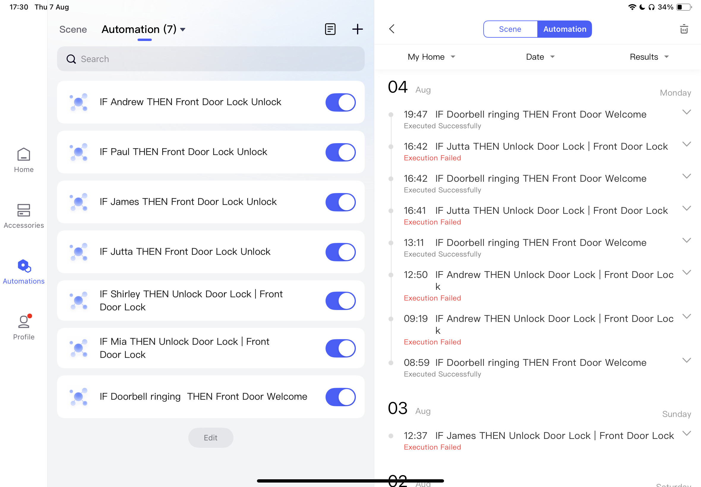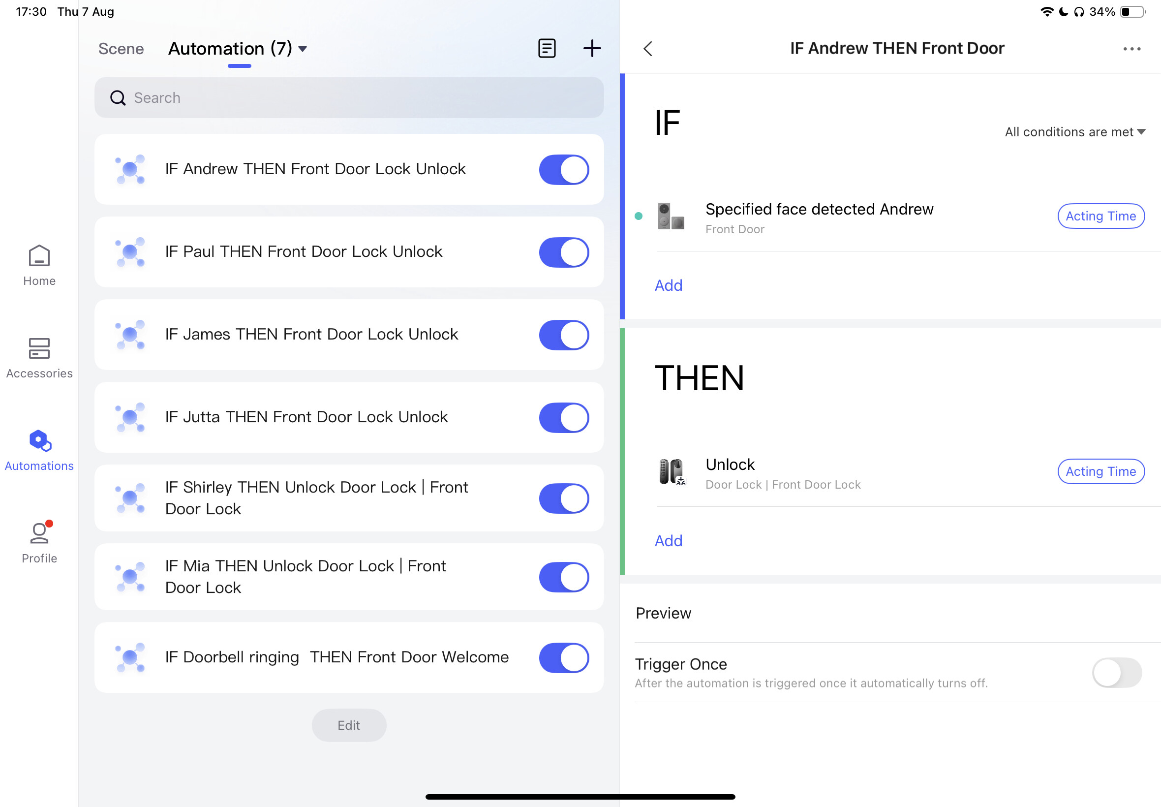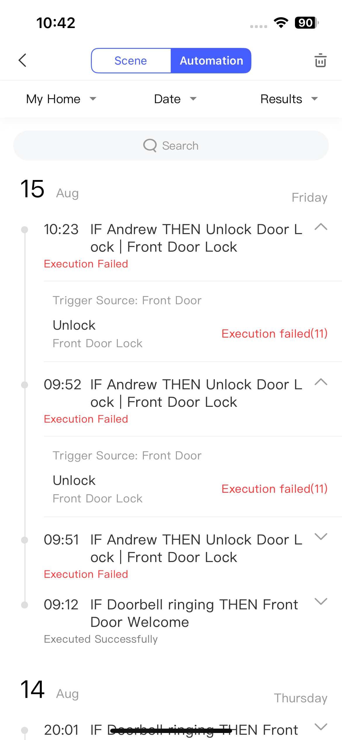 My automations to unlock the door with face recognition has stopped working.