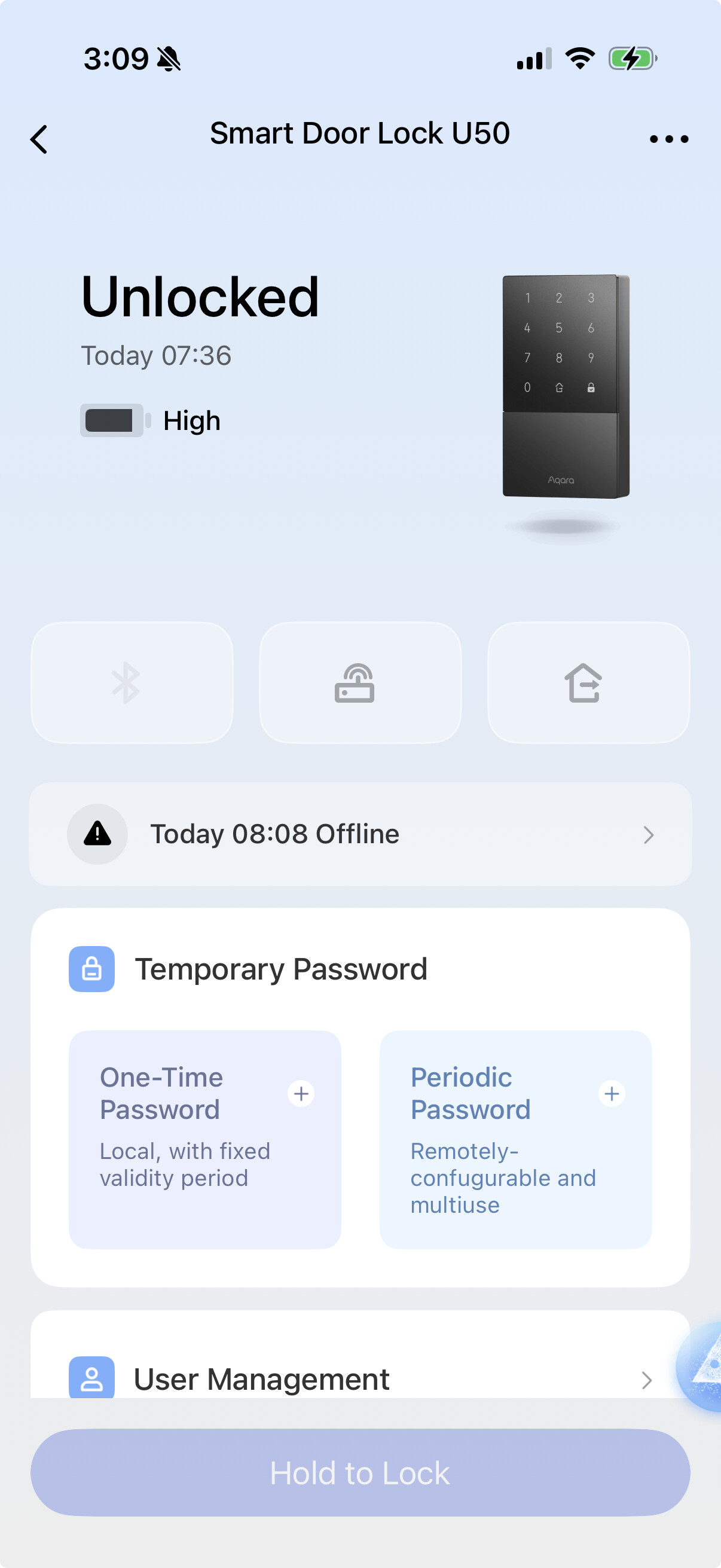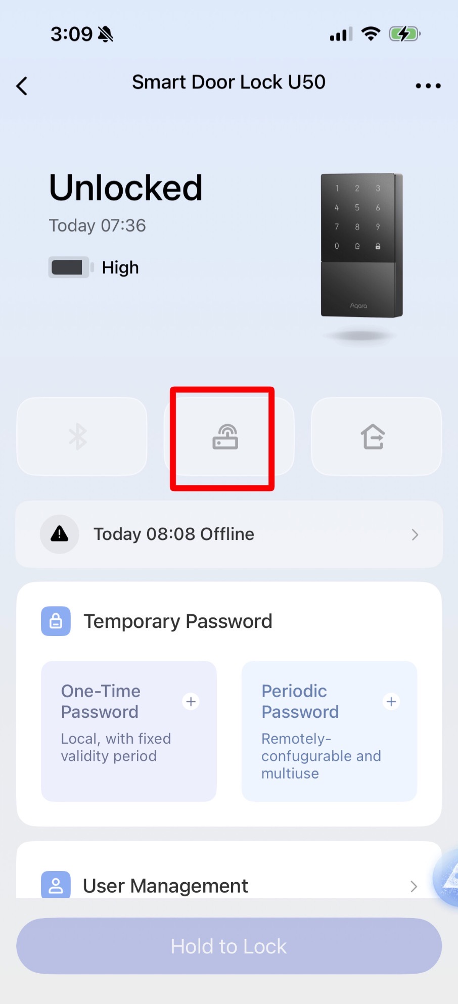 Our issue: we seem to be randomly/consistently “offline” from the U50 lock, for whatever reason. I think we’re just outside of Bluetooth range, so I have to go outside on the top deck level and can just barely activate the Bluetooth from the house living. I was under the impression that once bound with the M100 hub (located in the downstairs studio) I would not need to do this, but it is not working. Any thoughts on how I can get this to work?