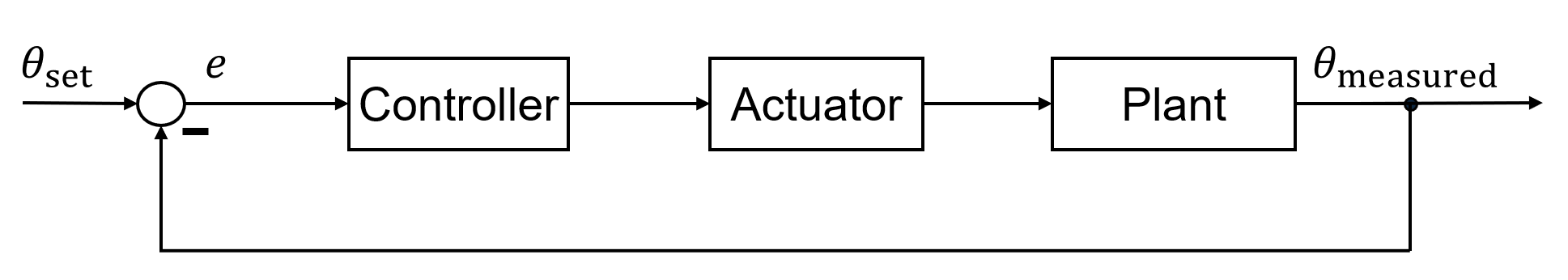 - Error (e): The difference between setpoint and measured temperature (e = theta_set - theta_measured)