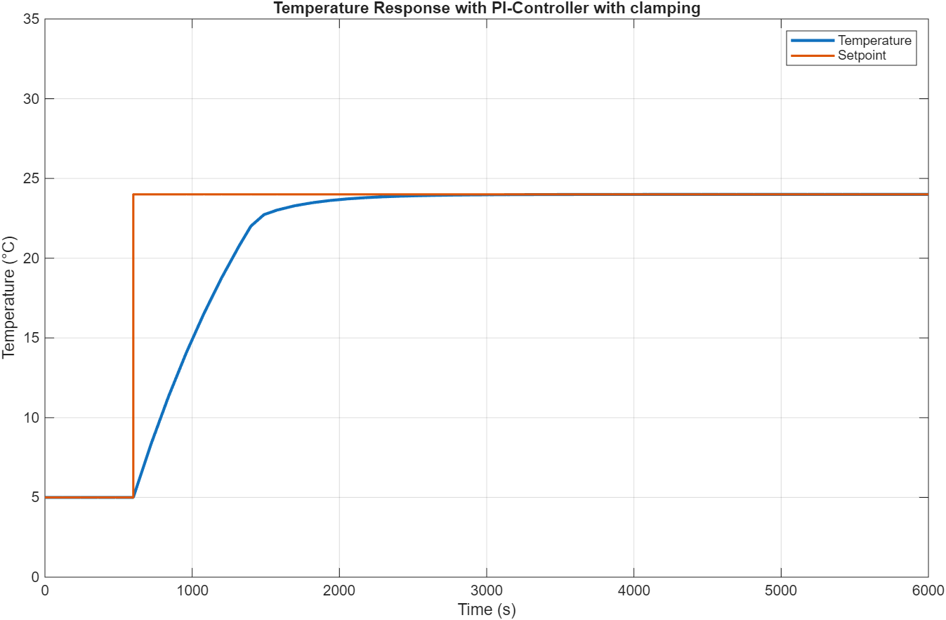- Zero steady-state error: Room temperature converges exactly to the setpoint