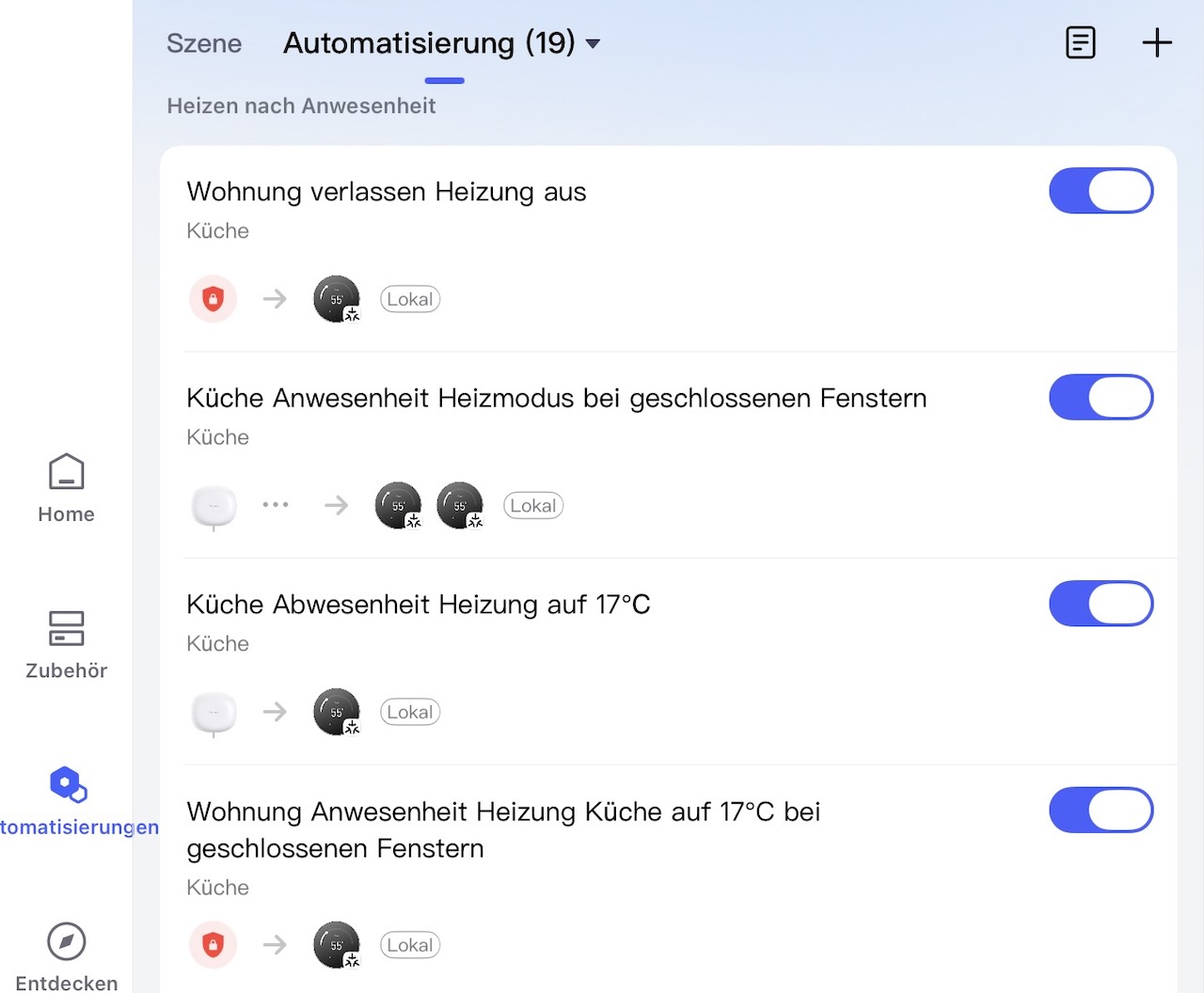 This opened up new automation options – especially when combining Eve Thermo with Aqara presence and contact sensors.