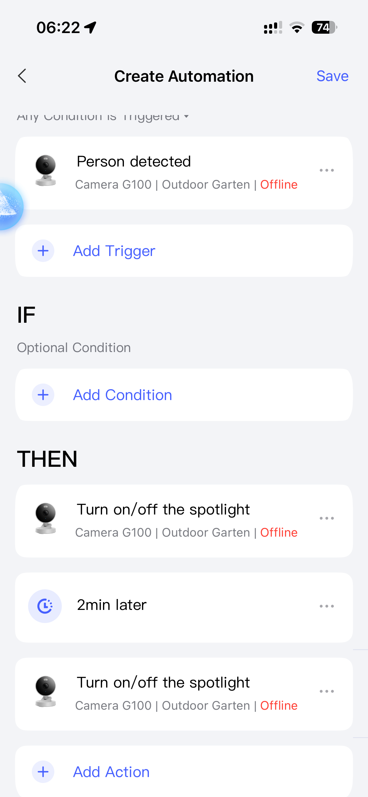 I’m getting to grips with Aqara & have just set up some bulbs in the terrace which switch on when a person is detected by the terrace camera (a G100). But I can’t find a way of turning the lights off when nobody is detected for a while. Please let me know how this can be done - do I need a more expensive Aqara camera to have a ‘nobody detected’ automation, please? I would appreciate any help or ideas.
