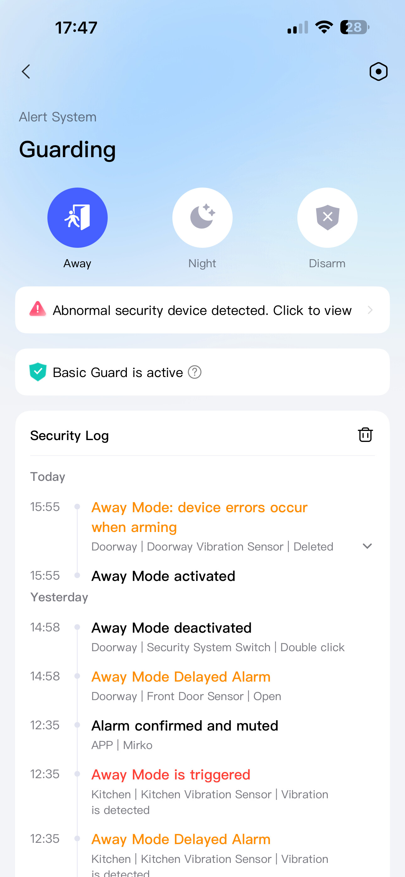 I have replaced 2 of the vibration sensors with T1 version (deleted the old ones and added the new ones) but they still appear in the Away alarm settings and are triggering abnormal device notification.