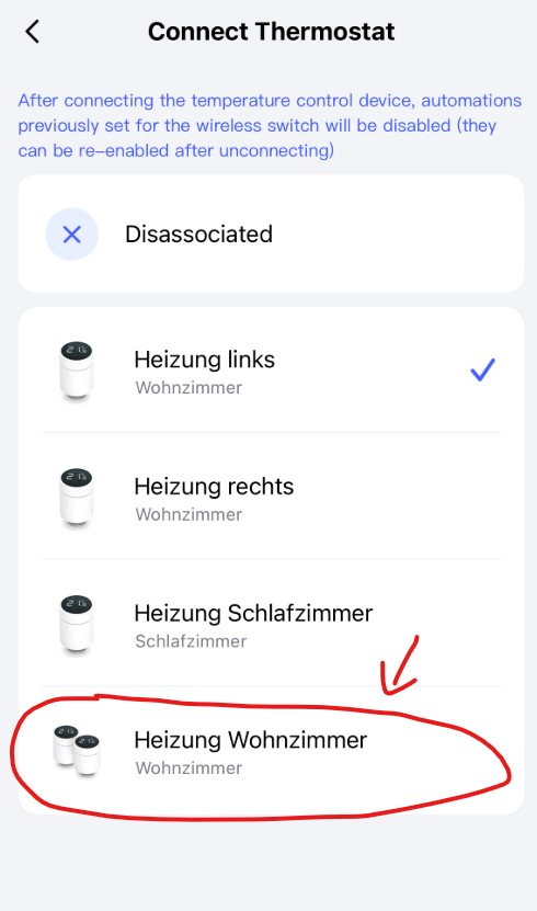On the W100, you can decide which thermostats can be controlled.