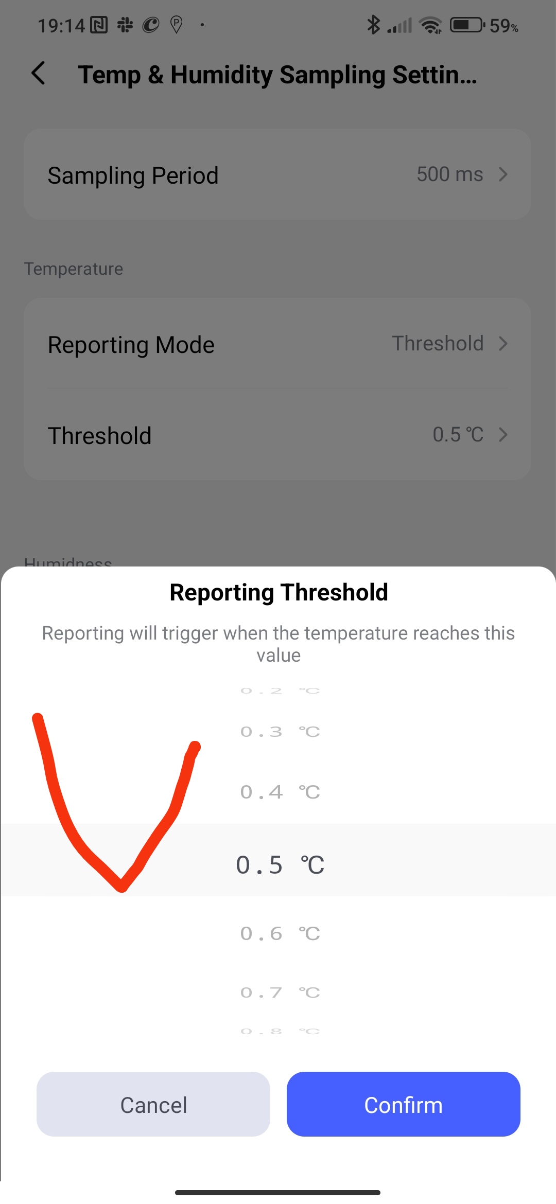 When the temperature changes by 0.2°C, the information will immediately go to the automation for execution. The peculiarity of this setting is that we can control in increments of 0.5°C (…10;10.5;11;11.5…°C), I think this feature is not very critical for the room.