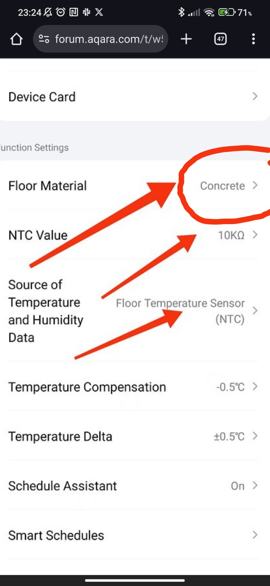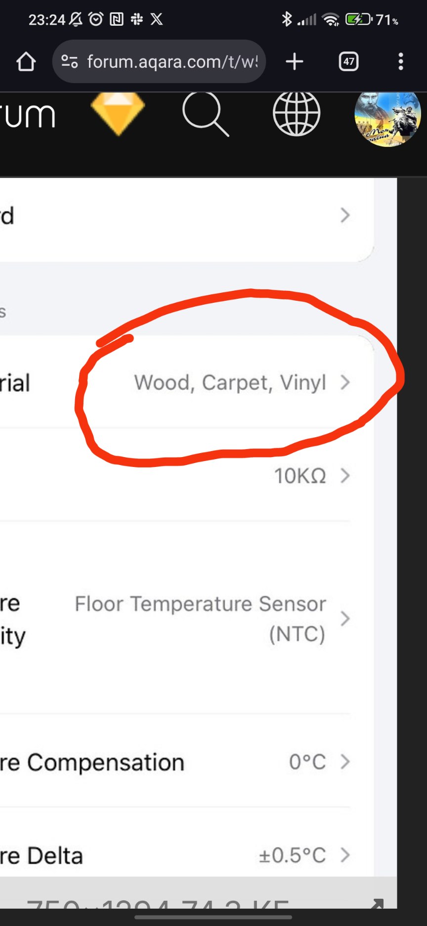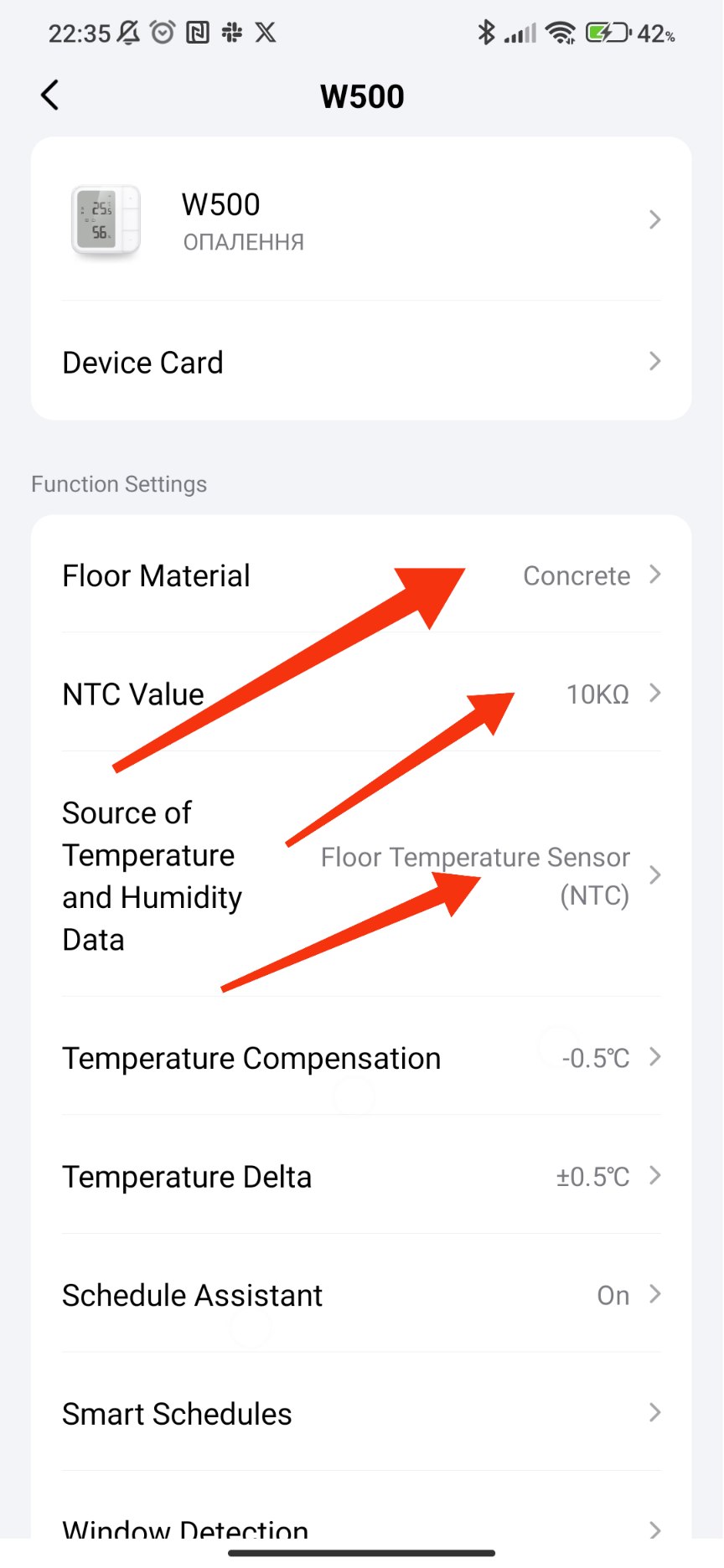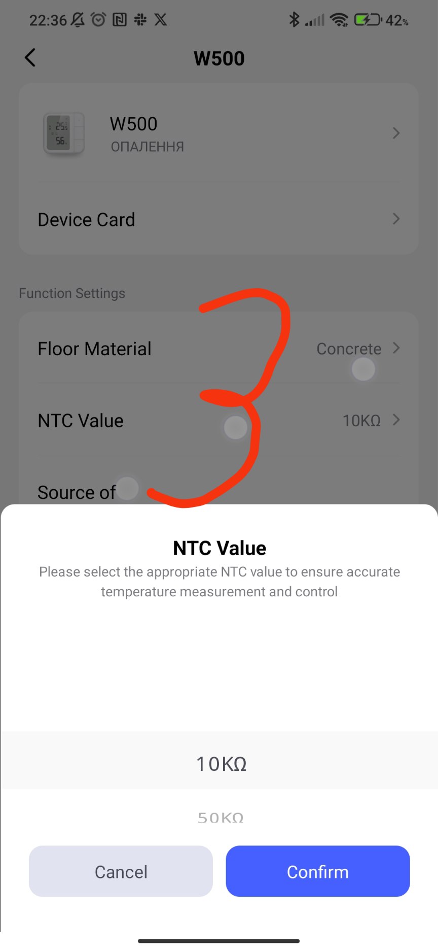 When I setup the thermostat I set the floor material to Wood, Carpet, Vinyl and NTC value to 10K.