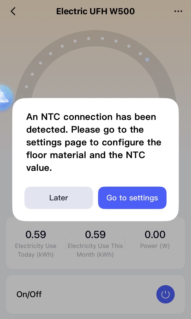 When you connect the W100 thermostat control for the first time, the W500 wants to warn you that the control via NTC may be incorrect (overheating of the floor with subsequent breakdown of the heating system). Therefore, the W500 wants to see the action with the selection of the floor type so that the responsibility for the heating parameters (fireplace, wood…) is under your control.