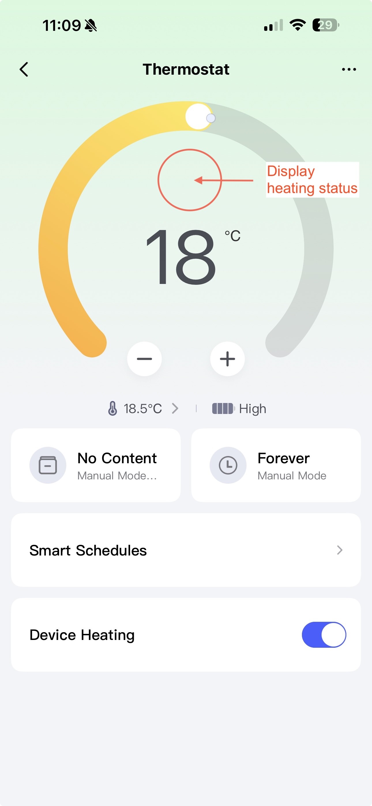 It is impossible to see in the Aqara Home app, whether the thermostat has currently opened the valve (heating) or closed the valve (not heating).